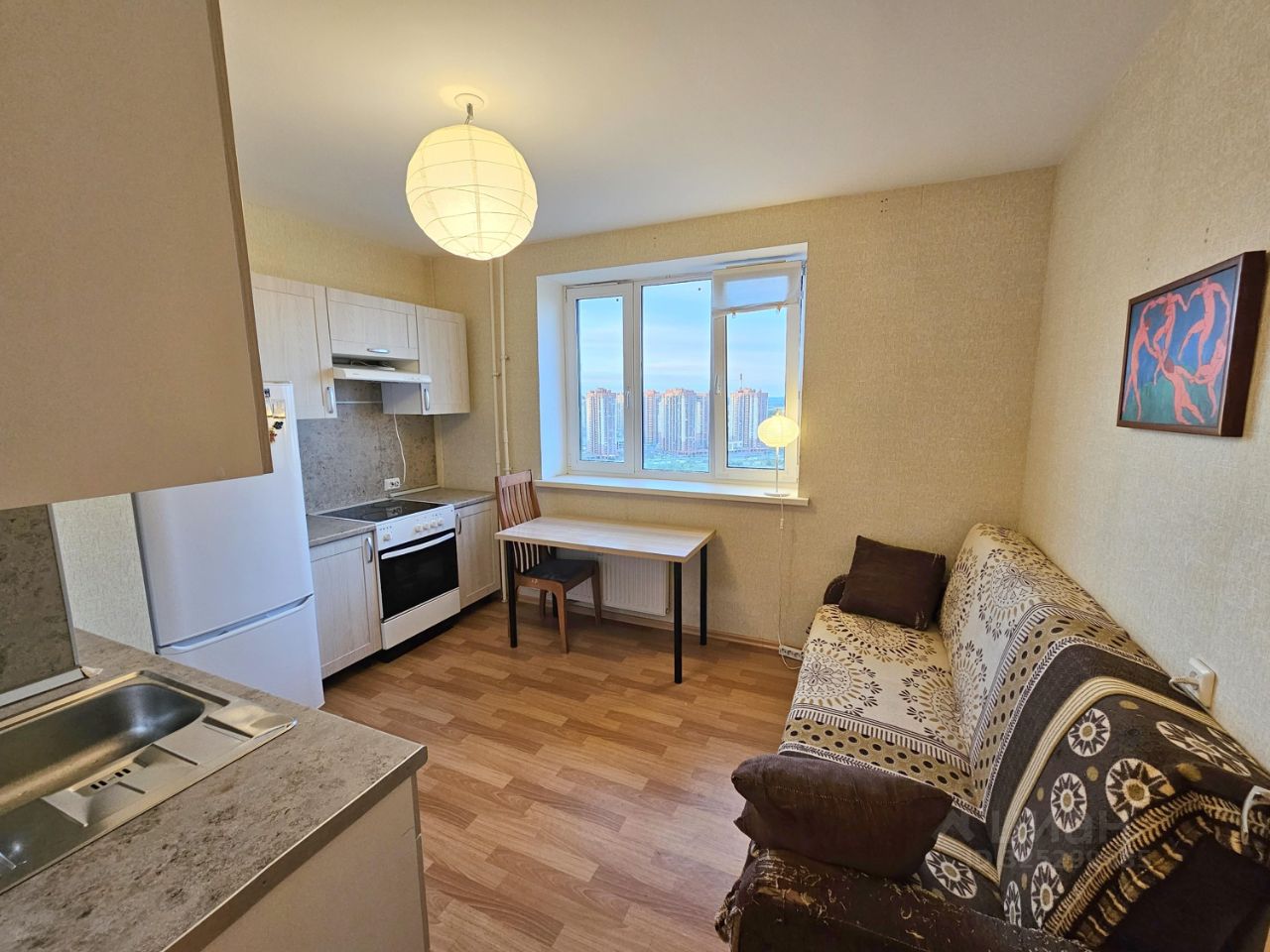 Квартира меблирована и укомплектована необходимым минимумом бытовой техники: холодильник, плита с керамической варочной поверхностью, стиральная машинка-автомат (всё представлено на фото). Oтдeлкa oт заcтpойщика.