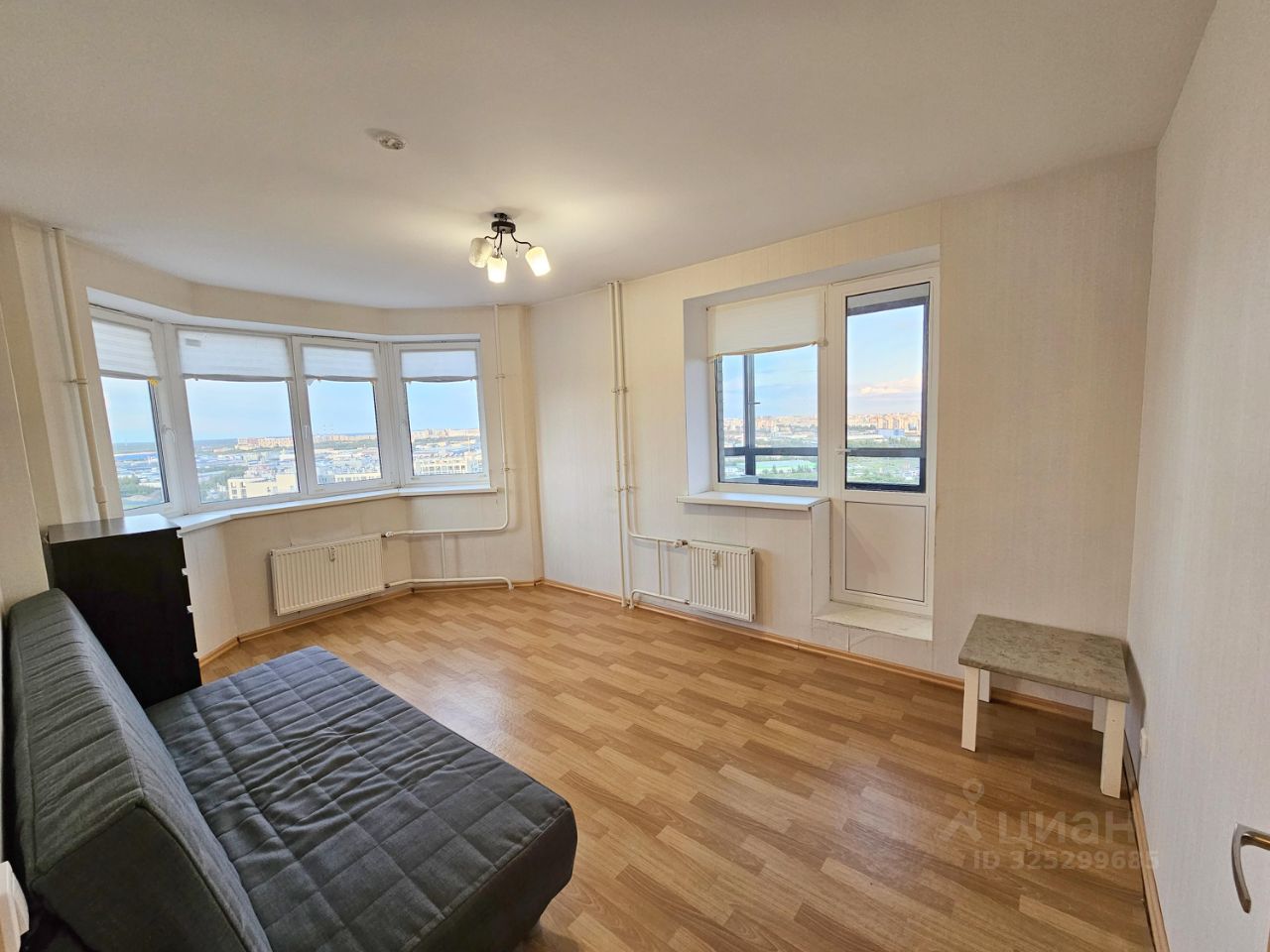 Квартира очень солнечная, тёплая. Окна выходят на восточную и юго-восточную стороны. Панорамное остекление балкона, из окон открывается красивый вид на город.