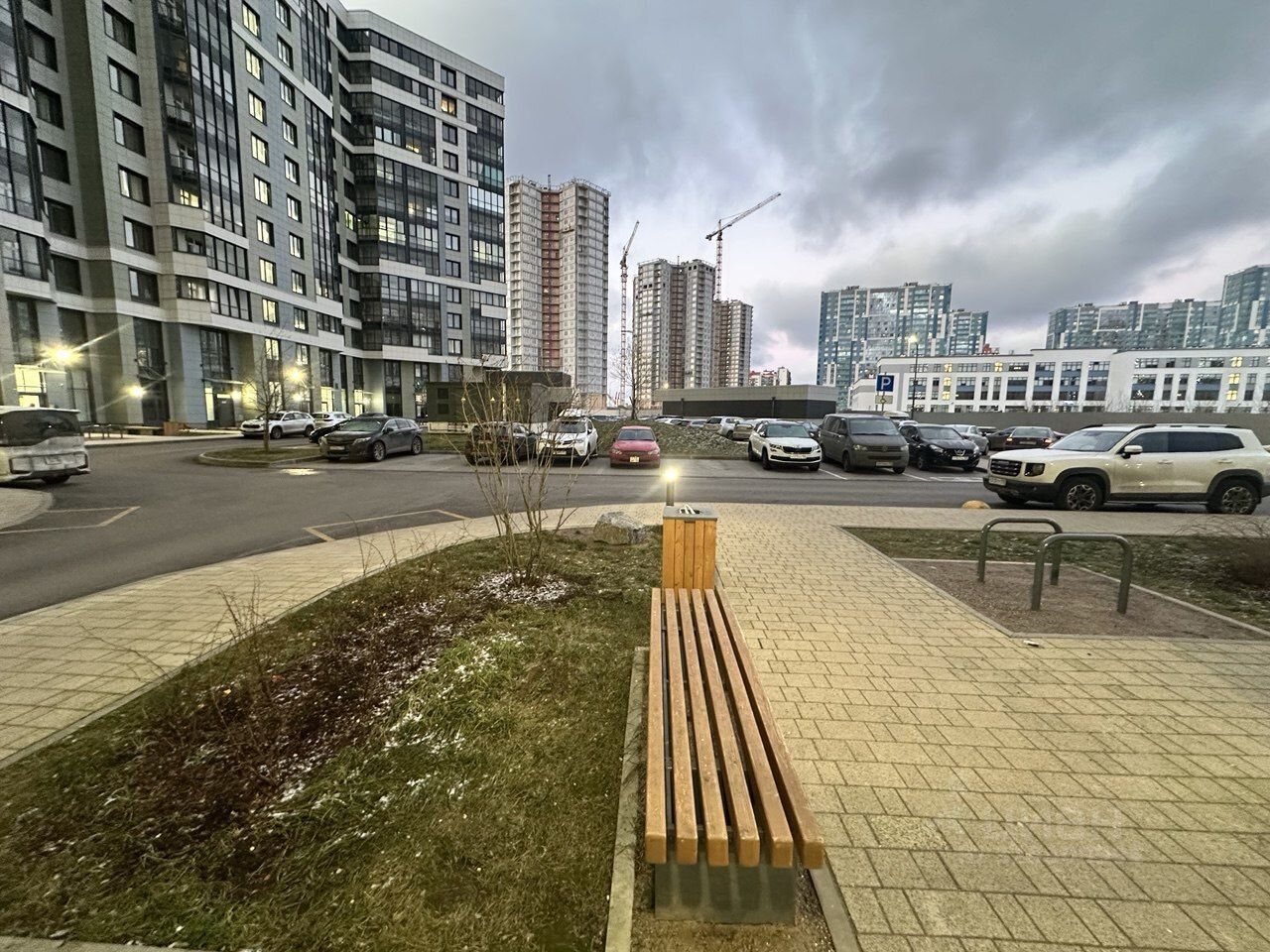 Во дворе предусмотрена спортивная площадка и парковка за шлагбаумом.