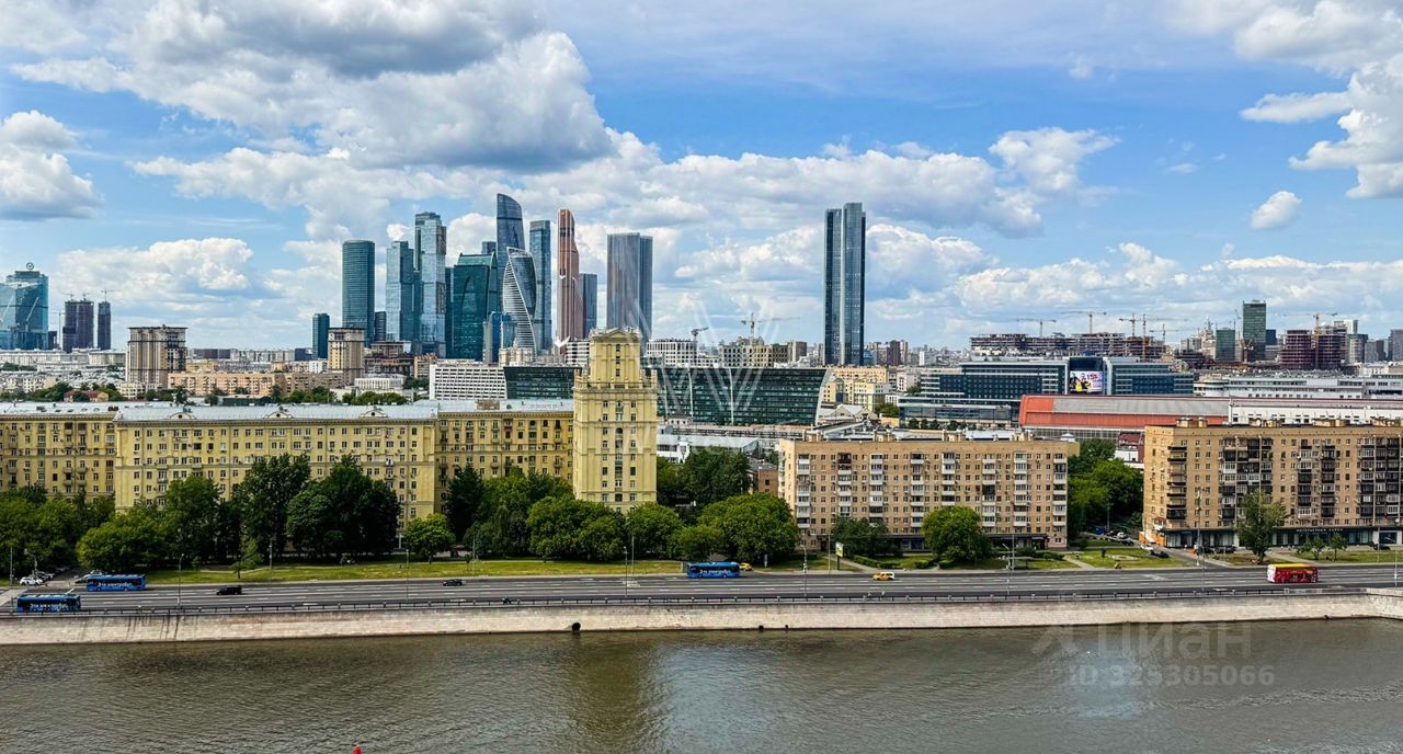 Окна ориентированы на две стороны, открываются панорамные виды на Москву-реку, башни ''Москва-Сити'' и на гостиницу ''Украина''.
