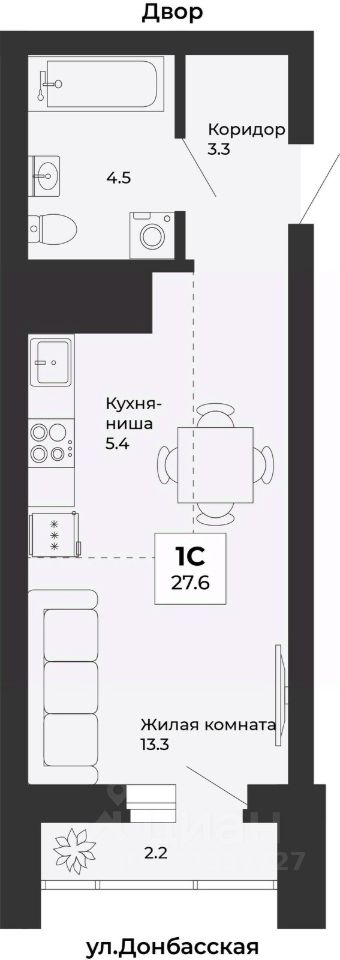 продам 1-к, Донбасская, 13а стр.5 382 000 ₽