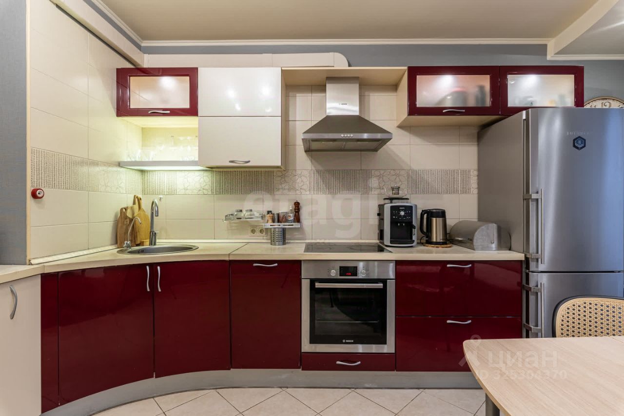 Планировка: - кухня 15,2 м² с выходом на застеклённый балкон 4,1 м², - две изолированные комнаты 17,2 м² и 17 м², - отдельная комната 12,5 м² с балконом 3,4 м², - ванная комната 4,2 м² и отдельный санузел 2,1 м², - просторная прихожая 12,6 м².