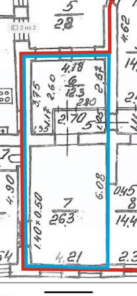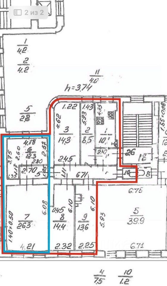 Общая площадь: 39.8 кв.м. Этаж: 5-й Высота потолков: 4.5 м Отдельный вход Санузел Большие окна Возможность перепланировки