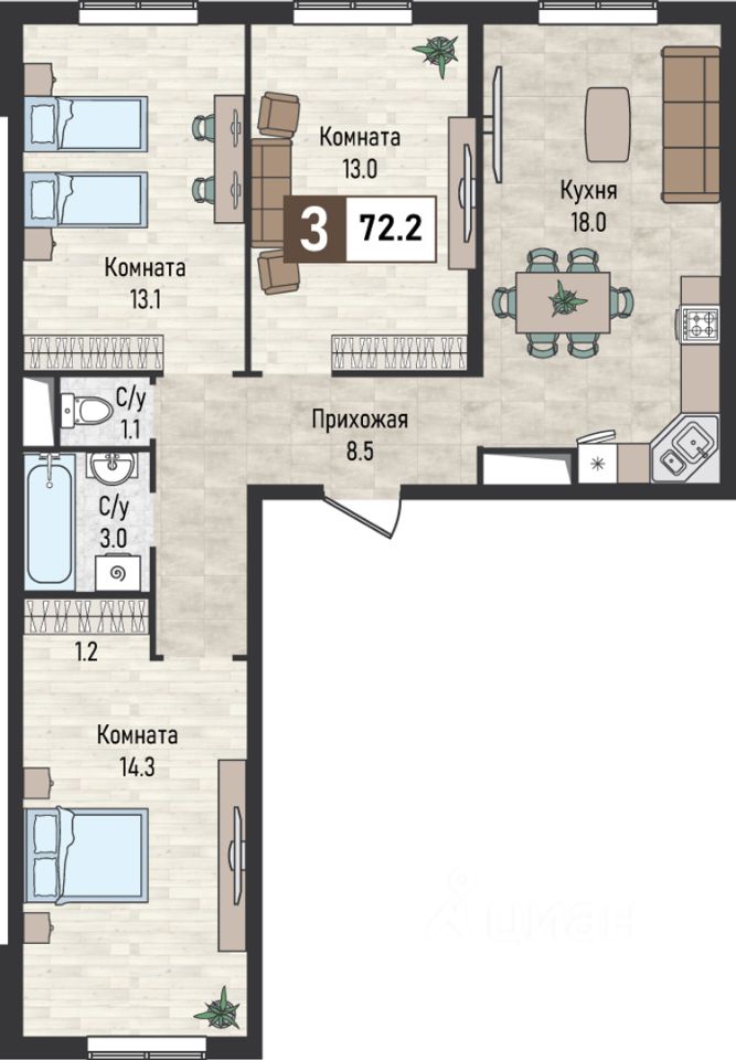 Продаётся 3-комнатная квартира в строящемся доме (7 очередь 2 этап), срок сдачи: I-кв. 2028, общей площадью 72.2 кв.м., на 3 этаже. Новый жилой комплекс ''Живописный'' расположен на территории Кавказских Минеральных Вод, рядом с основными курортными городами (Железноводск, Пятигорск, Ессентуки, Кисловодск) и горнолыжными курортами соседних республик. Насладиться головокружительными видами и активным отдыхом можно в соседних регионах: в Карачаево-Черкессии (на горнолыжных курортах Архыз и Домбай) или в Кабардино-Балкарии (в Приэльбрусье, побывав на г.Эльбрус). А из Международного аэропорта Минеральные Воды имени М. Ю. Лермонтова, расположенного в 20 минутах езды, можно улететь более чем по 30 внутренним и международным направлениям. ЖК ''Живописный'': Атмосфера: комплекс расположен в экологически чистом районе, органично вписываясь в окружающий ландшафт с колоритной природой и потрясающими видами.Отлаженная инфраструктура: образовательные учреждения, объекты здравоохранения, транспортные узлы, кафе и магазины находятся в шаговой доступности.Большой выбор квартир разной площади: улучшенные форматы квартир помогут воплотить в жизнь любые дизайнерские идеи и функциональные решения.Индивидуальное отопление позволит вам самостоятельно регулировать температурный режим, включать и отключать систему в любое время года.Проектом предусмотрены коммерческие помещения на первых этажах всех корпусов с целью развития и улучшения качества инфраструктуры. Для вашего удобства организованы наземная парковка и просторные кладовые помещения, вынесенные за пределы квартир.Придомовая территория включает благоустроенные зоны отдыха, детские игровые и воркаут-площадки. Огороженный двор и системы наблюдения обеспечат приватность и безопасность проживания.Более подорбную информацию о строительстве жилого комплека можно узнать на сайте застройщика