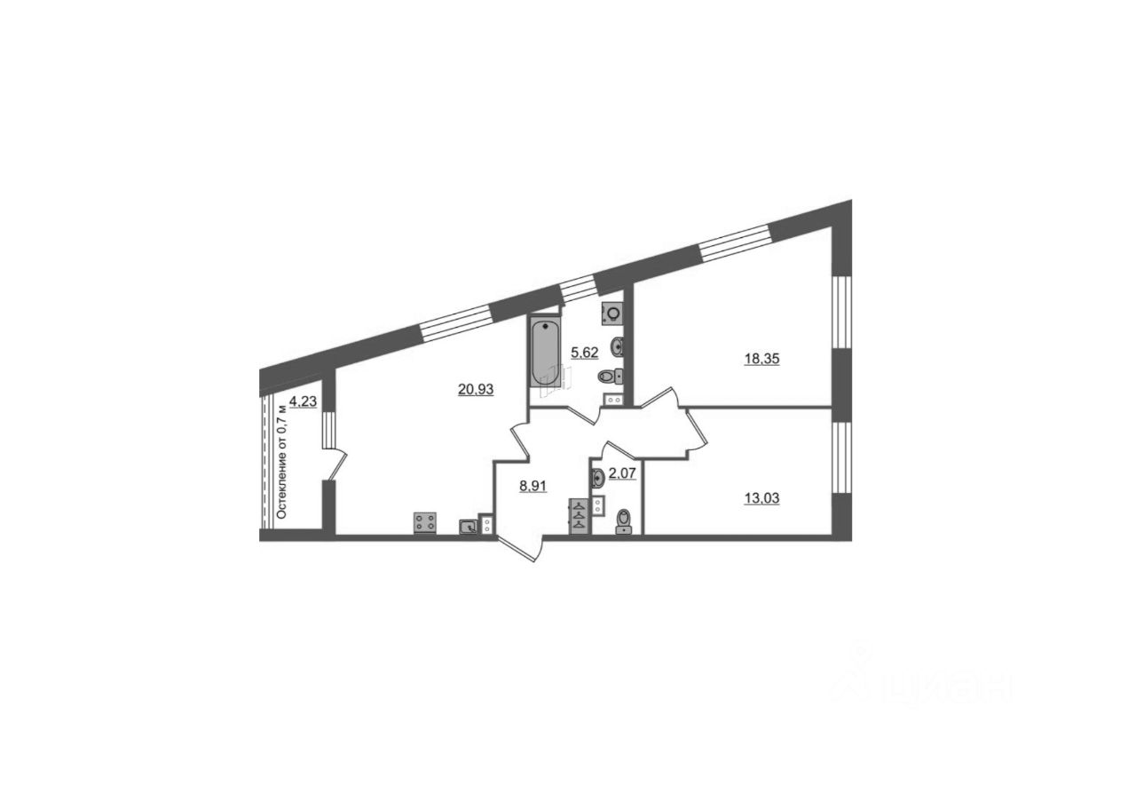Продается современная двухкомнатная квартира с евроремонтом в новом монолитно-кирпичном доме, построенном в 2025 году. Общая площадь составляет 71,03 кв. м, из которых жилая занимает 31,38 кв. м, а кухня — 20,93 кв. м. Квартира расположена на 2 этаже 12-этажного дома, в пешей доступности от метро ''Пионерская'' (10 минут на автомобиле).