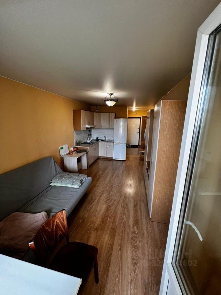 В квартире сделан евроремонт, установлена вся необходимая мебель как в комнате, так и на кухне. Из техники есть холодильник и стиральная машина. Планировка студии позволяет максимально эффективно использовать пространство. Санузел совмещенный, с ванной, что особенно удобно для любителей принимать водные процедуры. Из окон открывается вид на улицу, а также есть лоджия для отдыха на свежем воздухе.