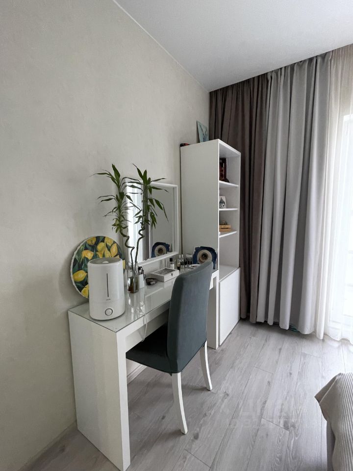 Квартира светлая, уютная, окна выходят во двор. Полностью оборудована мебелью и техникой: посудомоечная и стиральная машины, кондиционер, телевизор, духовка, бойлер для горячей воды. Двуспальная кровать с ортопедическим матрасом 160см, раскладной диван в кухне-гостиной. В квартире имеется панорамный балкон.