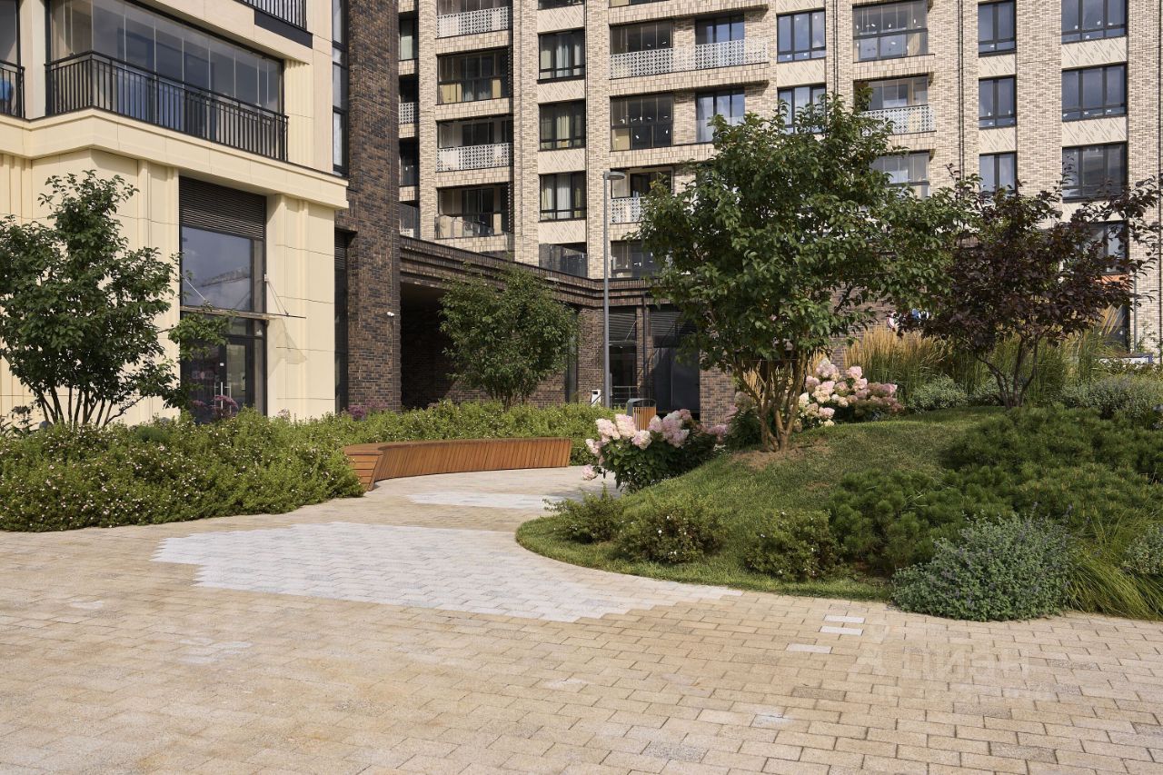 Квартал продуман до мелочей. В нём обустроен двор с газонами и прогулочными аллеями, видовыми площадками для отдыха с деревянными шезлонгами и перголами. Резиденты будут наслаждаться эффектной панорамой Москвы-реки с шестиметровой возвышенности стилобата.
