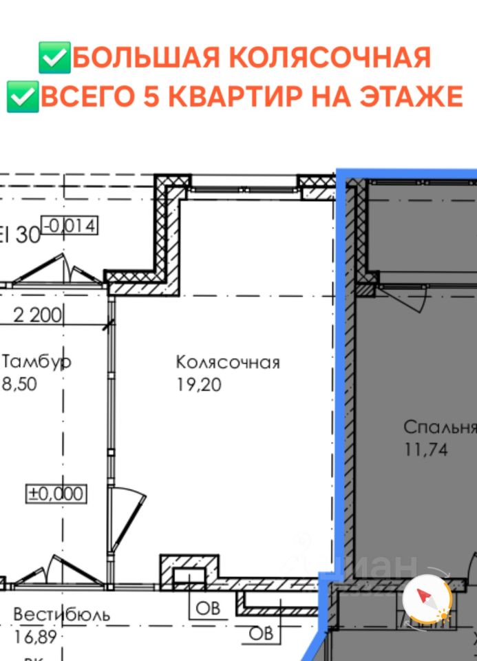 Квартира находится на первом этаже и вы можете воплотить в реальность любые панировочные решения. Личная терраса 14.5 м2 и две лоджии, два санузла и гардеробная. Окна выходят на разные стороны. Высокие потолки 2.75м. Всего 5 квартир на этаже.