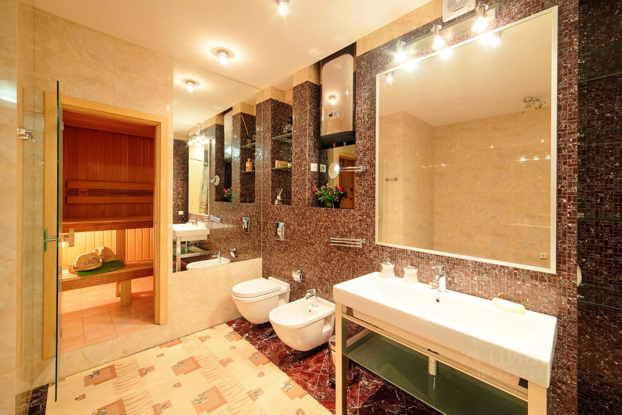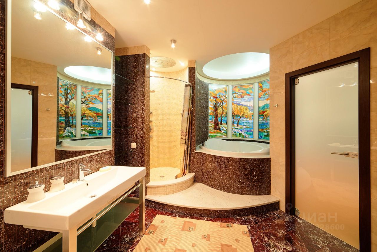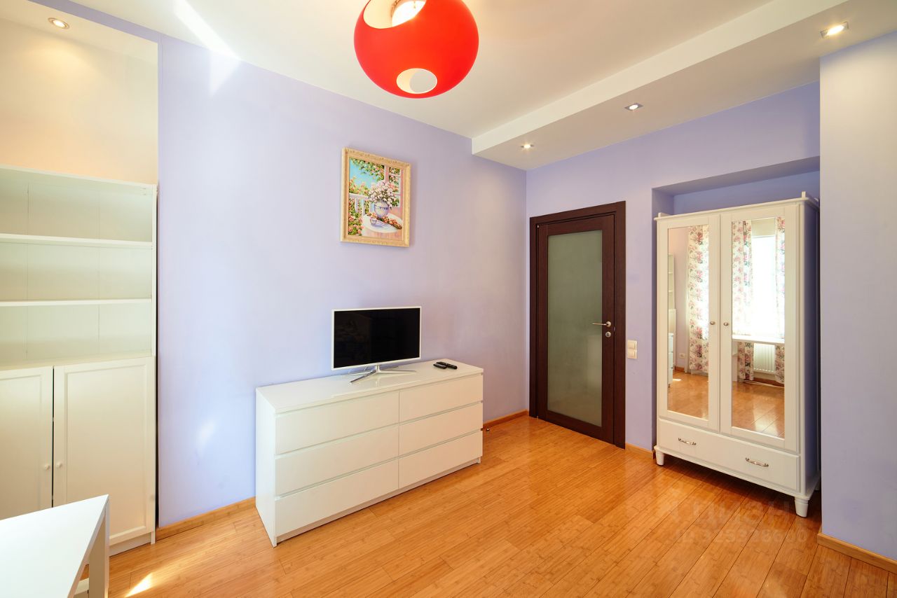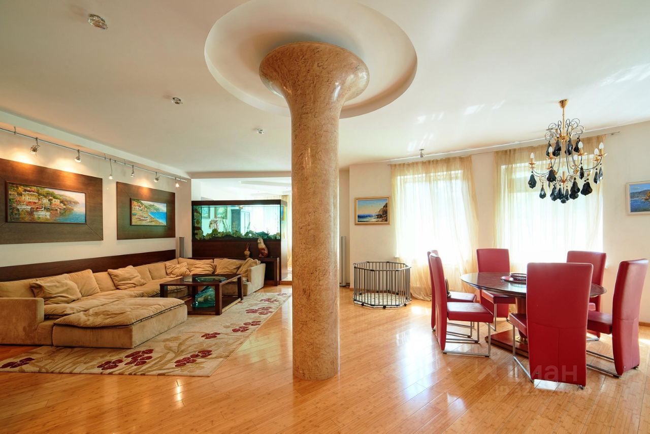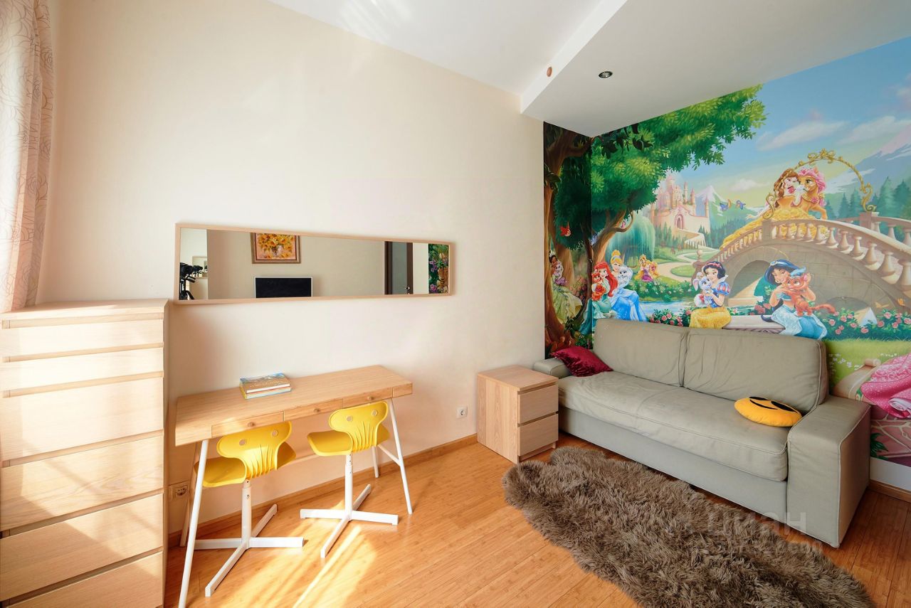 Гостиная и кухня 80 м, две детских спальни по 15 метров, хозяйская спальня 30 м, большая ванная с сауной, гардеробная и тренажерный зал, система кондиционирования, два парковочных места, охрана, вид на парк.