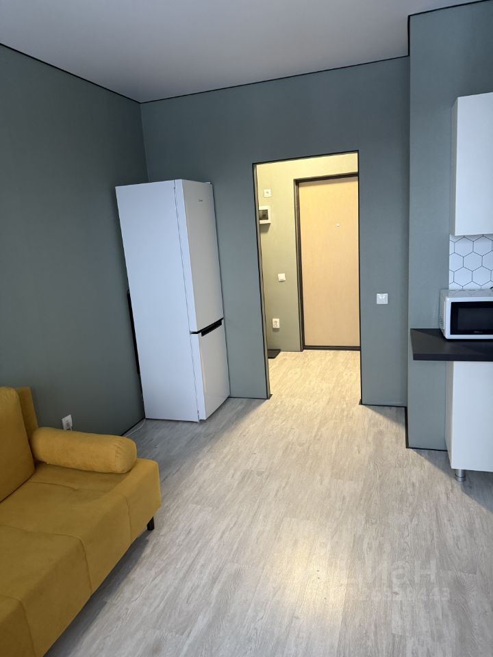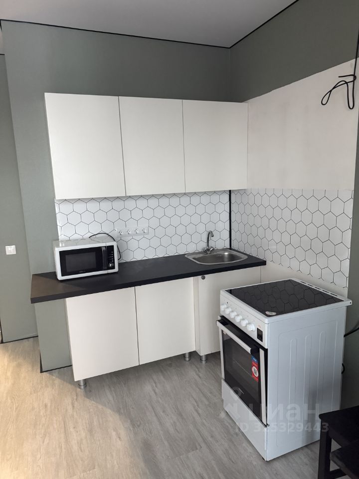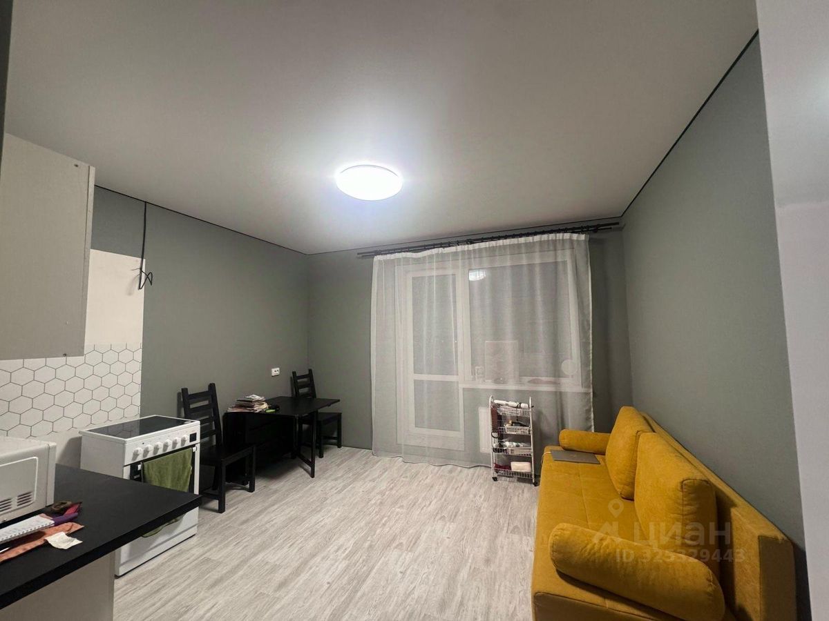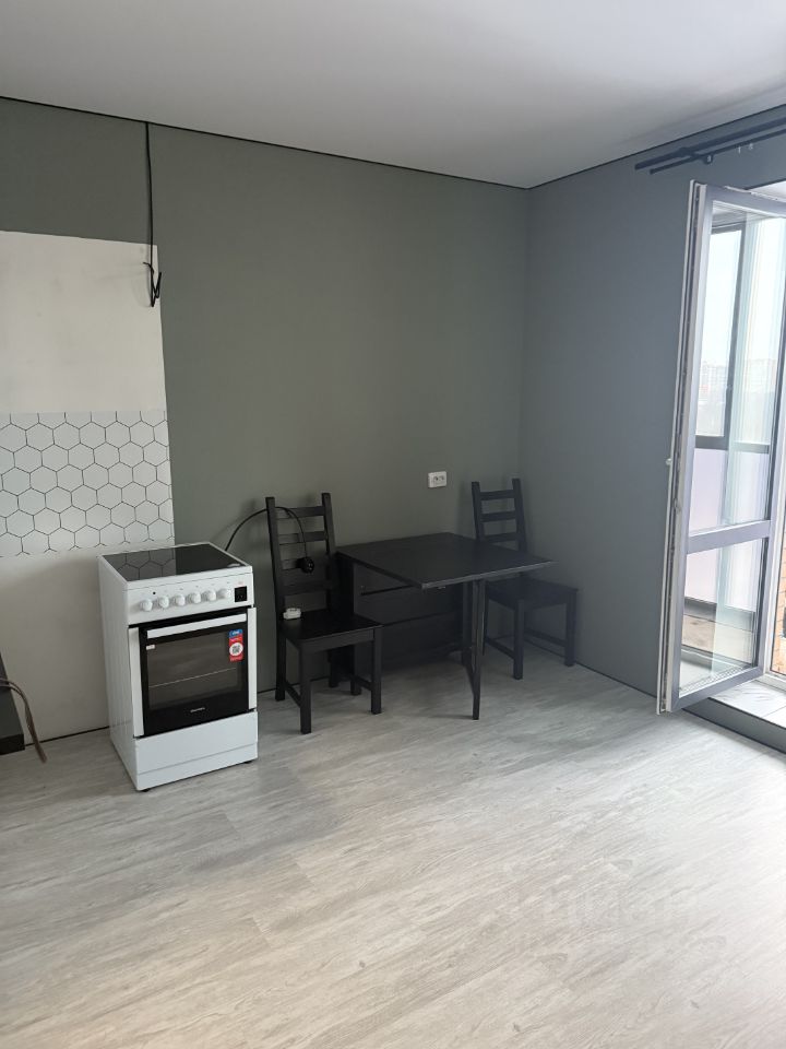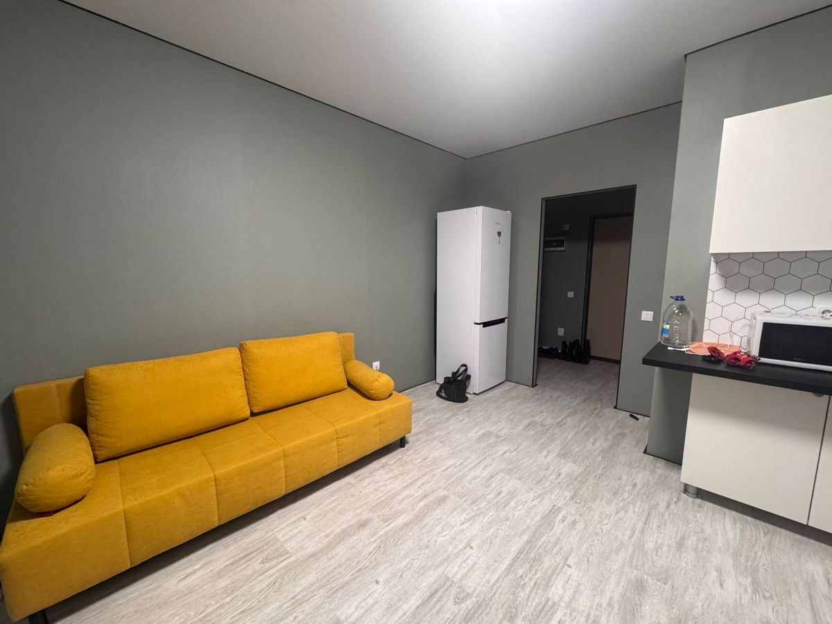 Сдается студия на длительный срок в новом монолитно-кирпичном доме 2024 года постройки. Просторная жилая зона площадью 25 м² оформлена в современном стиле с качественным евро ремонтом. В квартире есть все необходимое для комфортного проживания: вместительный шкаф, удобный диван и стильная кухня с современным гарнитуром.