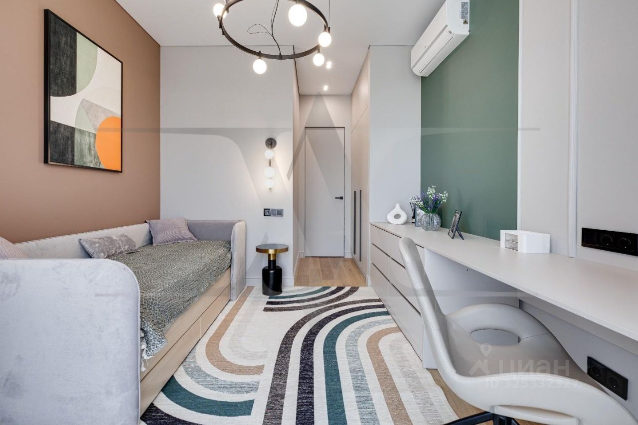 Ремонт выполнен по индивидуальному дизайн-проекту с использованием качественных современных материалов. Планировочное решение: кухня-гостиная 26 кв.м, спальня 13 кв. м., совмещенный санузел, 2 гардеробные. Выполнены несколько сценариев освещения (карнизная подсветка, споты, освещение зоны TV, подшторная подсветка) в которых преобладают люстры итальянского бренда Odeon Light.Новая мебель, кухня с техникой и предметы интерьера входят в стоимость.