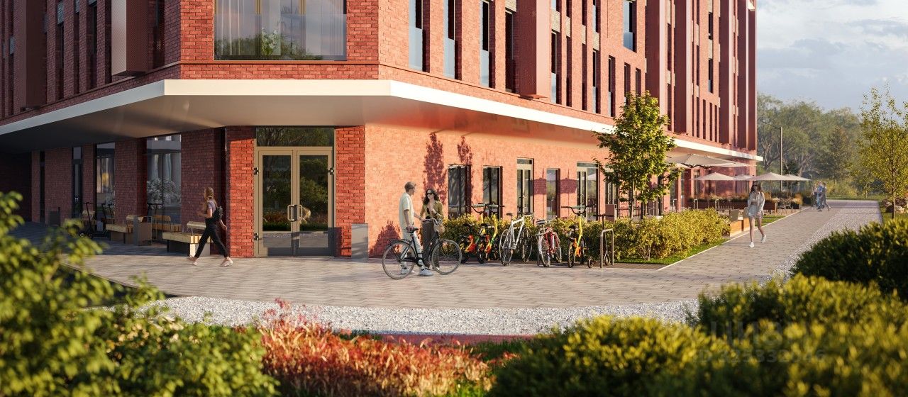 Для прогулок возле реки Охты благоустроят набережную. Для автомобилей предусмотрена парковка и подземный паркинг. Артикул 818949 (Застройщик АО СЗ ''Ладожский'') [cn_sbp_1836348]