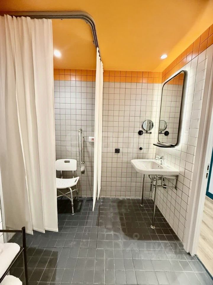 - Уютный номер площадью 23 кв.м., оборудованный специально для людей с ограниченными возможностями здоровья. В номере двуспальная кровать. - Номер оснащен мини-кухней с холодильником, варочной поверхностью и набором посуды, рабочей зоной, беспроводным интернетом, ЖК-телевизором и системой экстренного оповещения и связи с персоналом. - В ванной комнате есть душевая зона с удобными поручнями, набором индивидуальных банных принадлежностей, а также феном. - Для гостей апартаментов предоставляется комплиментарный безлимитный доступ в тренажерный зал спа-комплекса Domina Spa & Wellness. - На наземном паркинге есть 3 парковочных места для людей с ограниченными возможностями здоровья. Парковочное место предоставляется бесплатно (при наличии свободных мест). - 13-й этаж — хорошая освещённость и вид из окон