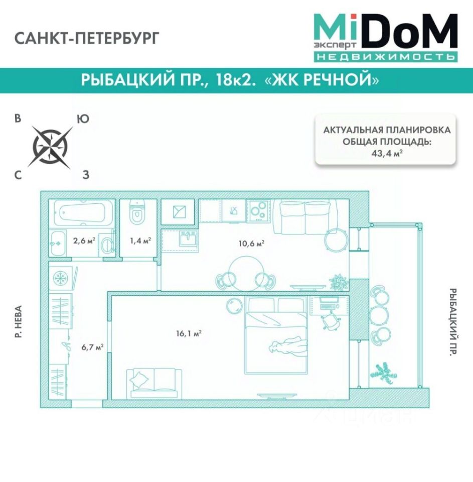 О ДОМЕ: Территория закрытая, с консьержем, круглосуточным видеонаблюдением, собственным двухуровневым подземным паркингом. Над паркингом реализована концепция ''Двор без машин'' с детской и спортивной площадками. Во дворе на закрытой территории располагаются: пекарня, озон, ВБ, яндекс маркет, аптека, магазинчики, школа танцев, тренажерный зал, салон красоты, а также несколько развивающих центров для детей. В соседнем доме открыли магазин Магнит. Жилой комплекс располагается на 1-ой береговой линии Невы, рядом большая парковая зона вдоль Невы — идеально для отдыха, прогулок с детьми, занятий спортом и выгула домашних питомцев. С другой стороны от ЖК - Восточный яхт-клуб и вейк-клуб.