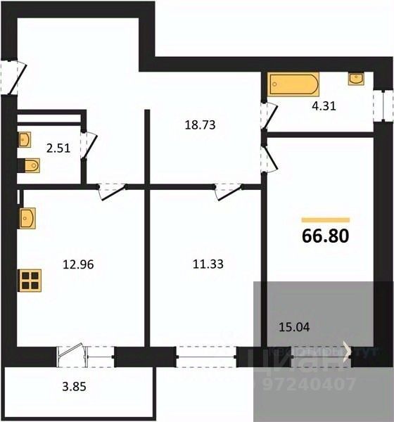 Квартира: 2 к 66,80 кв.м., 2 этаж в комплексе Александровский сад, 2 очередь, корп.1, сдача: 2кв. , этажей: 4, адрес Александровка село, Акварельная ул., , Застройщик: Еврострой.