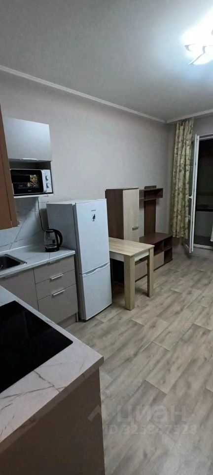 В комнате имеется мебель, которая позволит вам сразу начать комфортное проживание. Кухня оборудована всей необходимой техникой: холодильником, стиральной машиной и телевизором. Санузел совмещенный и оформлен в современном стиле, что добавляет дополнительный комфорт.