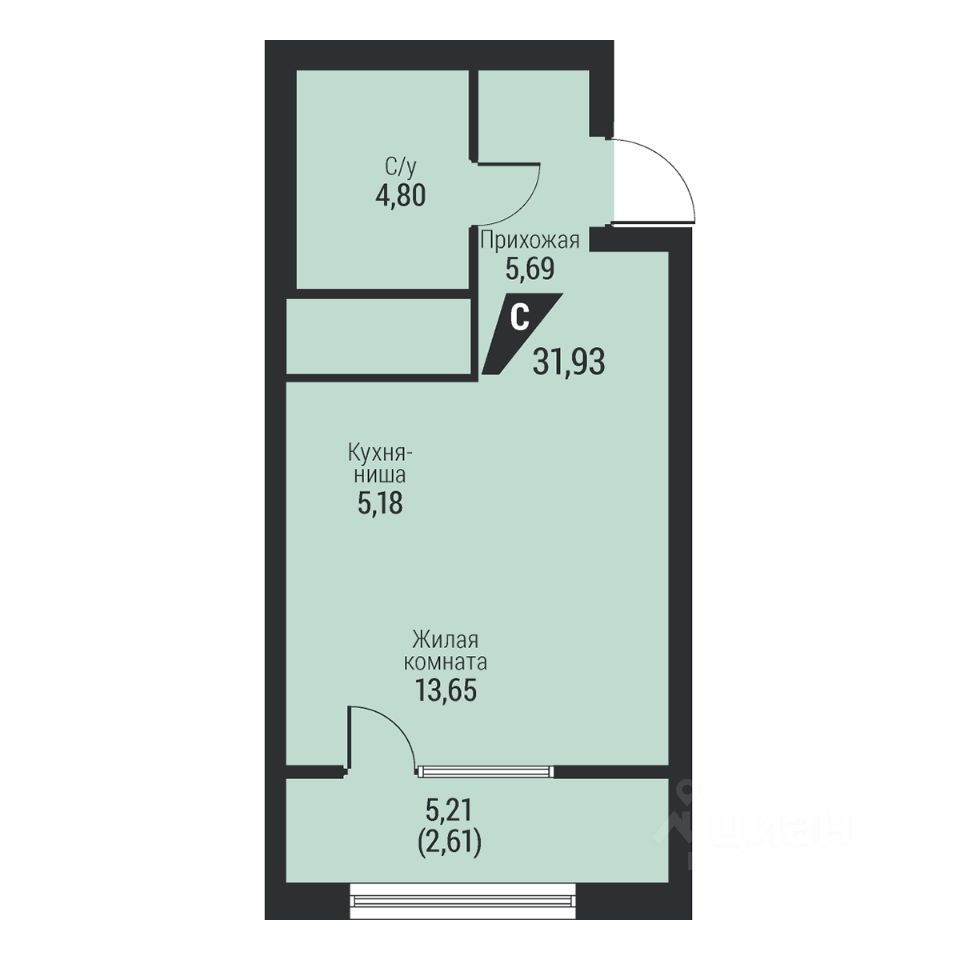 Общая площадь31,93 м2