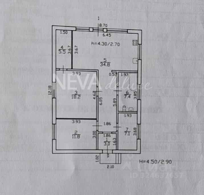 Дом одноэтажный, назначение: жилое. Высота потолков от 2.7 до 4,5 метров.