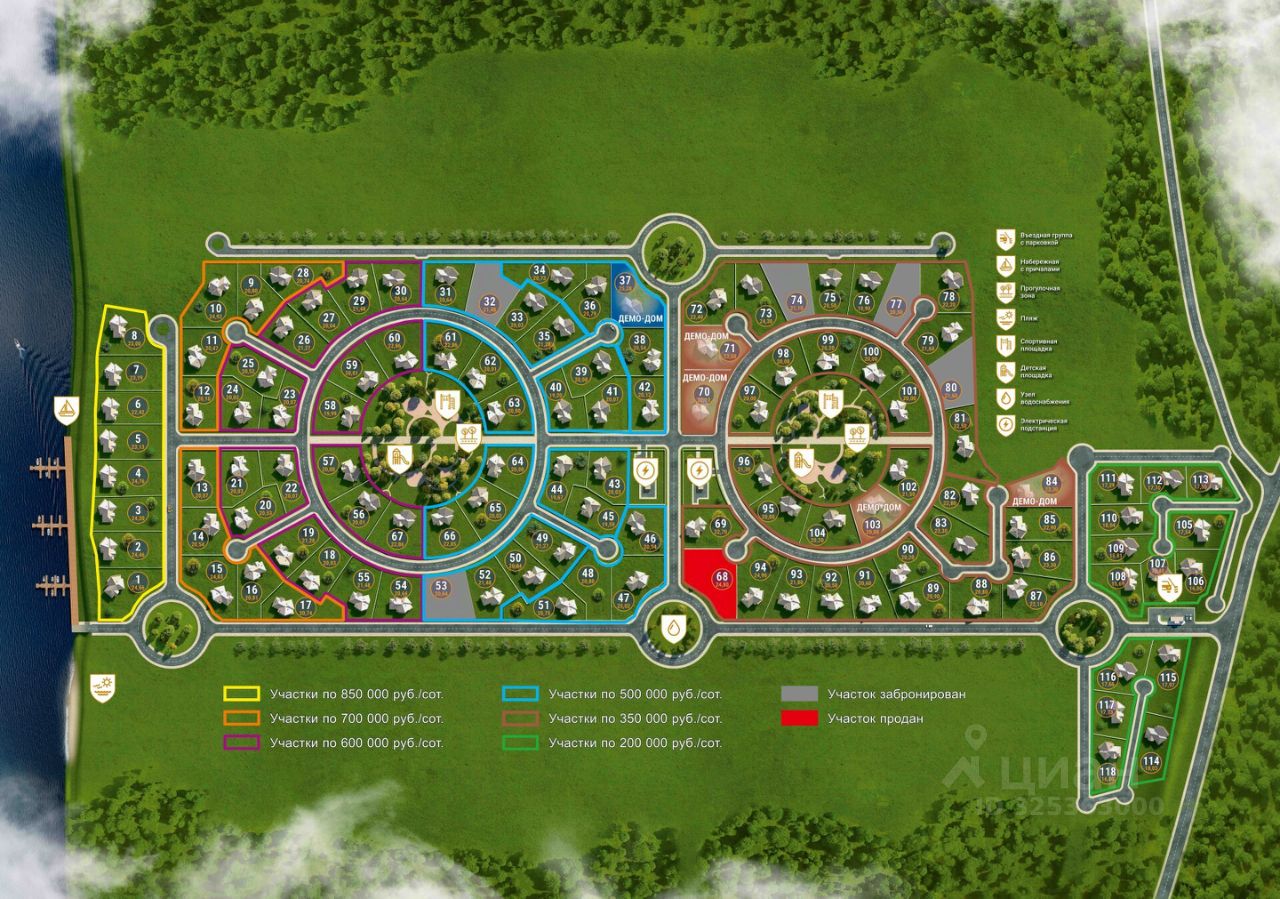 Преимущества поселка ''Тихая Пристань'' — Подъездные дороги к каждой кластерной группе участков. — Пятна застройки подготовлены: участки расчищены, исключая лишние затраты на земляные работы. — Газификация: трубный газ проведен к каждому участку. — Две скважины: техническая и питьевая вода для жителей поселка. — Центральная ливневая канализация обеспечивает удобство и чистоту. — Поселок граничит с дорогой 41К-262, обеспечивая удобный и прямой заезд. — Тишина и уединение: отсутствие турбаз, производств и шоссе поблизости. — Отсутствие соседних СНТ, ДНП, ИЖС: никакого шума и посторонних территорий рядом. — Единый ландшафтный стиль поселка создает гармоничное пространство. — Освещение в едином стиле. Все дороги, спортивные и детские площадки, пешеходные зоны и набережная поселка оборудованы освещением, выполненным в едином дизайнерском стиле. — Мир без заборов: открытые участки создают ощущение свободы и единства. — Сформированная береговая линия на южной стороне: солнце освещает поселок весь световой день. — Собственный пляж и пристань для катеров: только для жителей поселка, без доступа посторонних. — Благоустроенный бесплатный слип для лодок: удобный спуск на воду только для жителей поселка. — Зимняя стоянка для катеров: открытая охраняемая территория внутри поселка для хранения лодок на прицепах.