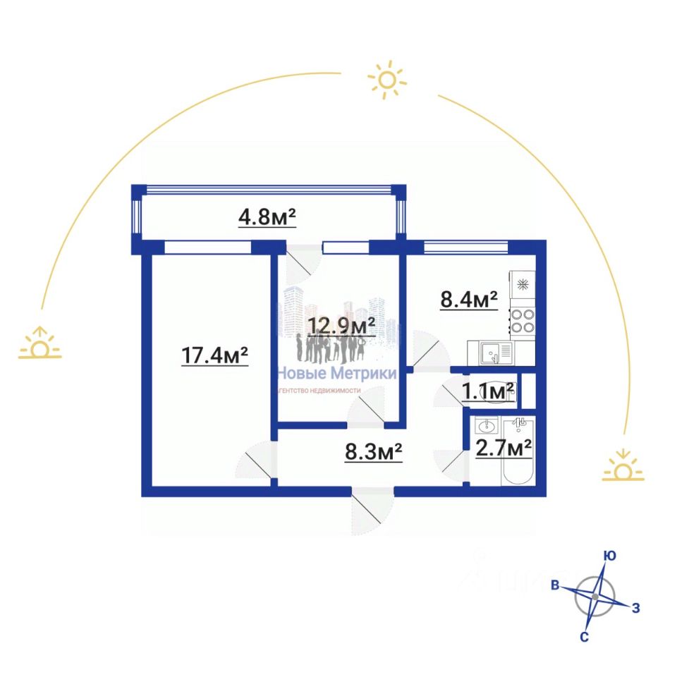 Квартира имеет изолированную планировку с просторными комнатами площадью 12.9 и 17.4 кв. м, что дает возможность легко создать идеальное пространство для жизни. Увеличенная кухня площадью 8.4 кв. м станет отличным местом для кулинарных экспериментов и семейных посиделок. В кухне, коридоре и санузлах выполнен свежий косметический ремонт, с использованием долговечных материалов, которые прослужат вам долгие годы. Жилые комнаты оставлены в первоначальном состоянии, чтобы новые собственники могли создать интерьер под свои предпочтения.