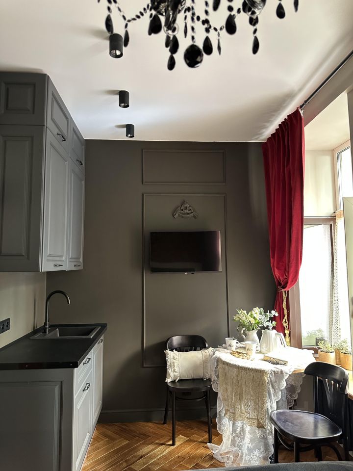 *Квартира: * Аутентичная, сохранены исторические элементы * Комфортный 3-й этаж, * Зона спальни, кухни, ванной, прихожей- 15,5 кв. метров * Высокие окна и потолки 3,07 * Кровать 140 с новым ортопедическим матрасом * Дубовый: паркет, подоконники, стол * Кухня * Фильтрованная питьевая вода * 2 вида штор * Smart TV * wi-fi * Душ, раковина, проточный водонагреватель на случай отключения горячей воды * Гигиенический душ * Зеркало с различными видами освещения * Теплый пол