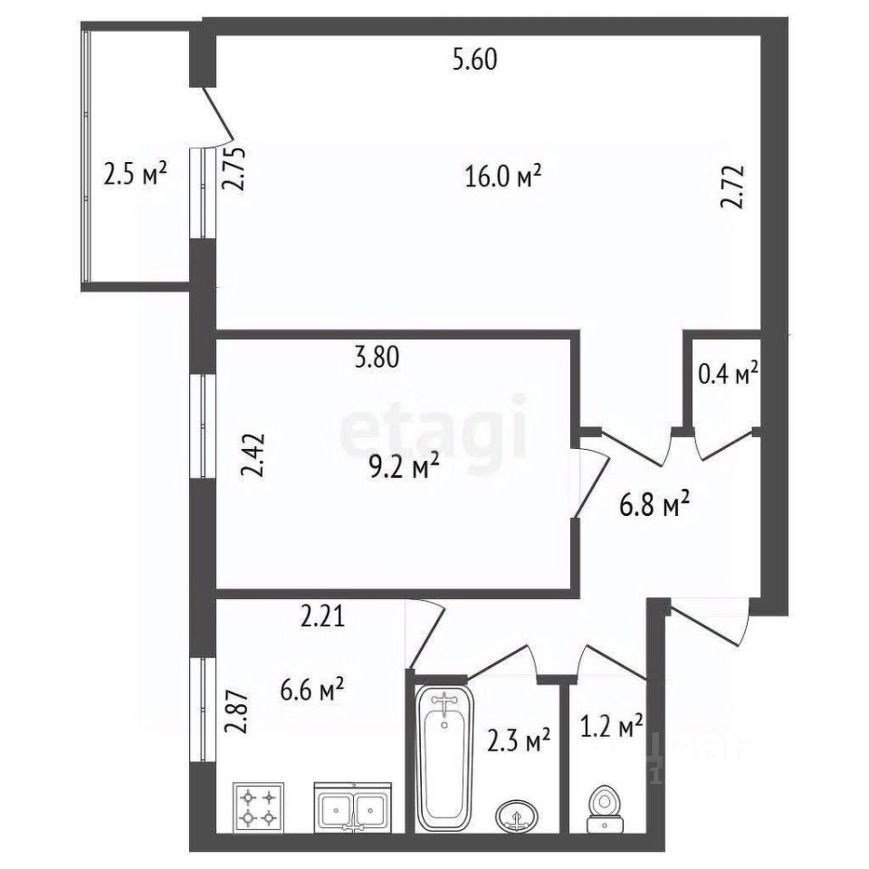Продаётся просторная однокомнатная квартира площадью 42,5 м²