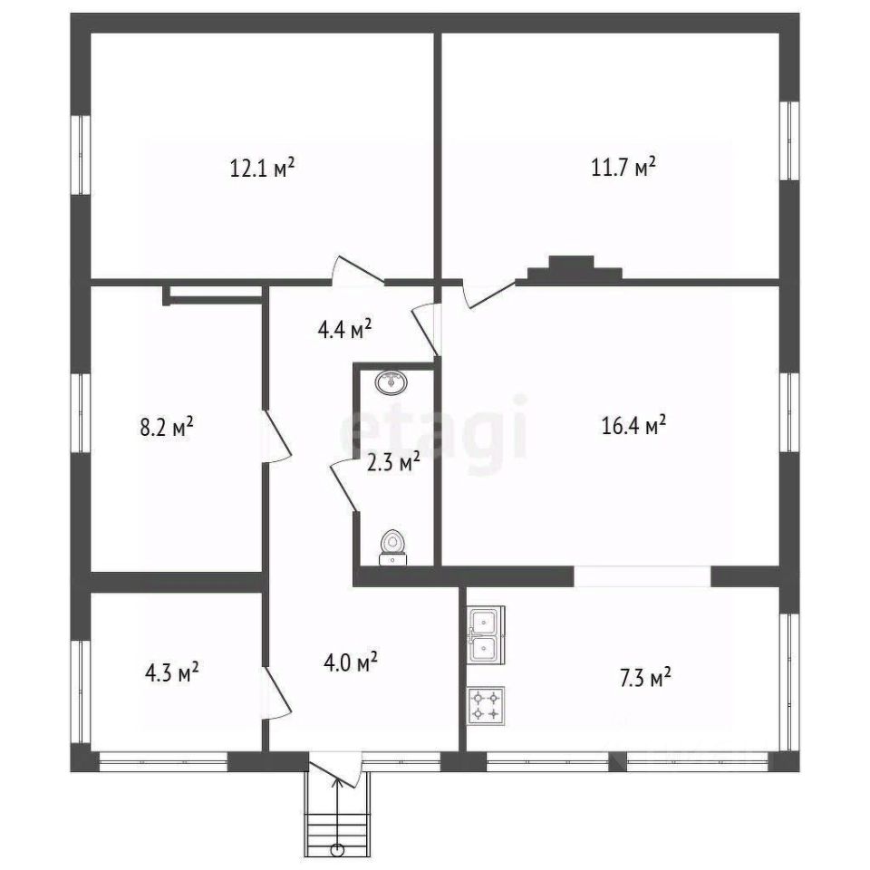 Внутреннее пространство организовано по практичной планировке: три изолированные спальни и просторная кухня-гостиная, объединенная в светлую зону для комфортного отдыха и приема гостей.