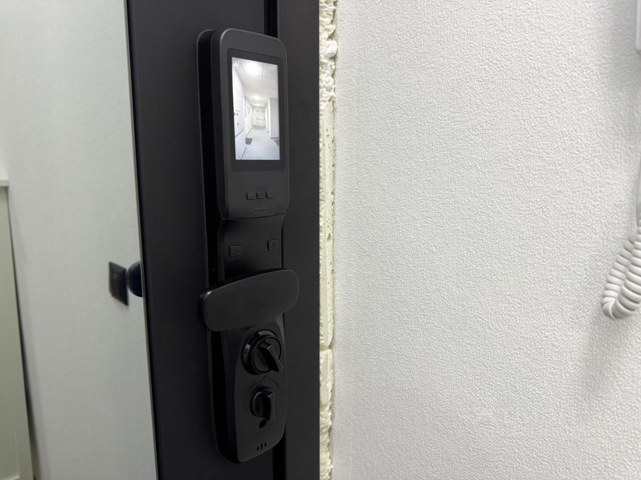 В квартире выполнен современный евро ремонт в светлых нейтральных тонах: на полу в комнатах, кухне и прихожей - ламинат, на балконе и гардеробе - плитка, в санузлах стены и пол выложены плиткой, установлена качественная сантехника, потолки - натяжные Установлены межкомнатные двери, входная металлическая дверь и видеодомофон.