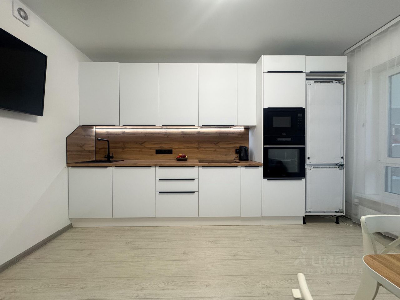 Новым жильцам остается кухонный гарнитур с встроенной техникой.