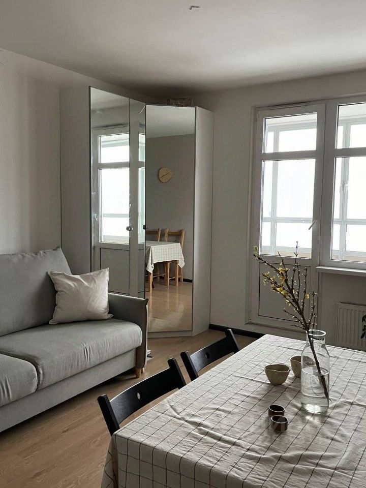 Квартира-студия, уютная, чистая, только после ремонта. Есть все для проживания: удобный раздвижной диван, кухня, холодильник, угловой шкаф для одежды. На балконе также огромный шкаф. Новая душевая кабина. Спокойные соседи.