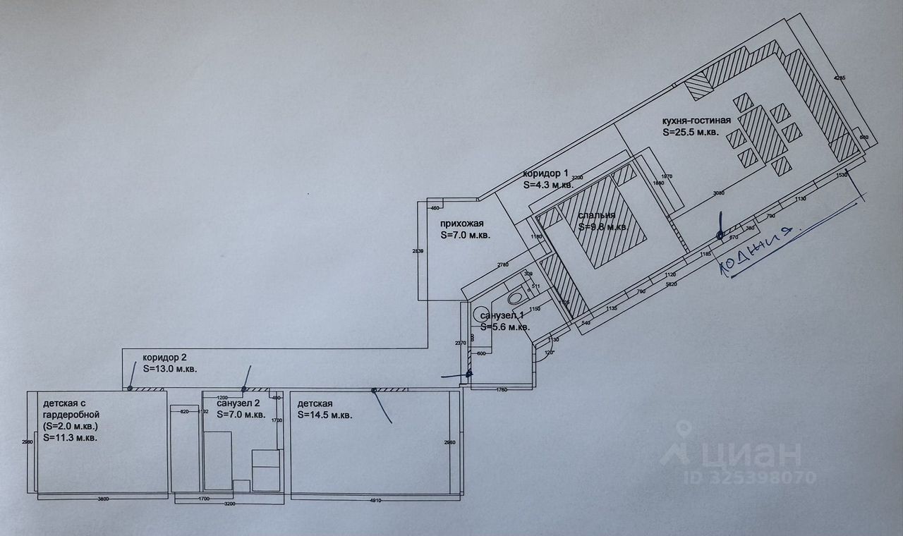 квартира для семьи с двумя детьми, комната для девочки с гардеробной , комната для мальчика, спальня для родителей и большая гостиная-кухня (26 м.кв.). Два санузла: один с ванной, второй с душевой (не кабиной), в душевой есть водогрей на случай отключения горячей воды. Теплые полы в прихожей и санузлах. Ремонт делался по моему проекту.