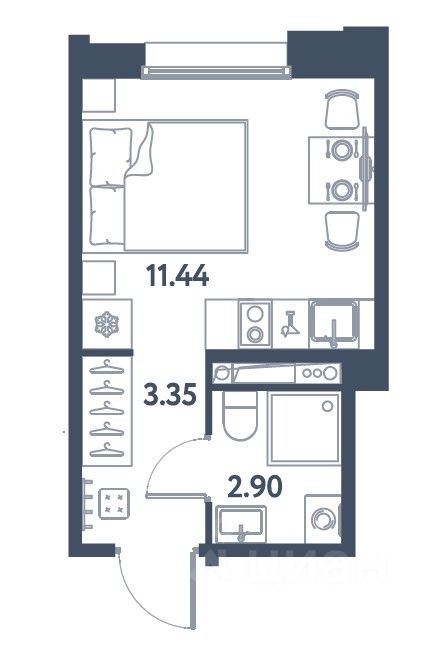 Преимущества объекта: • Самая ликвидная планировка 17,69 кв.м.