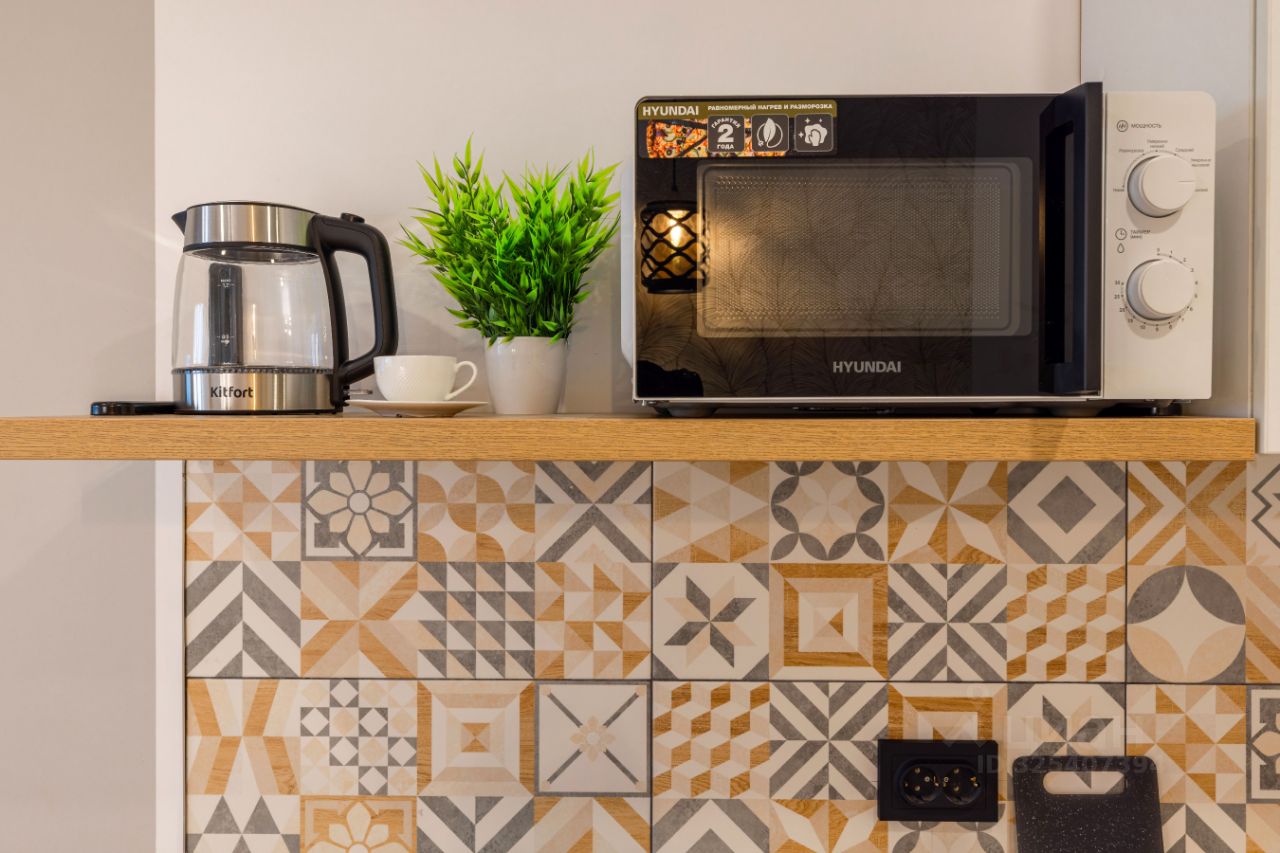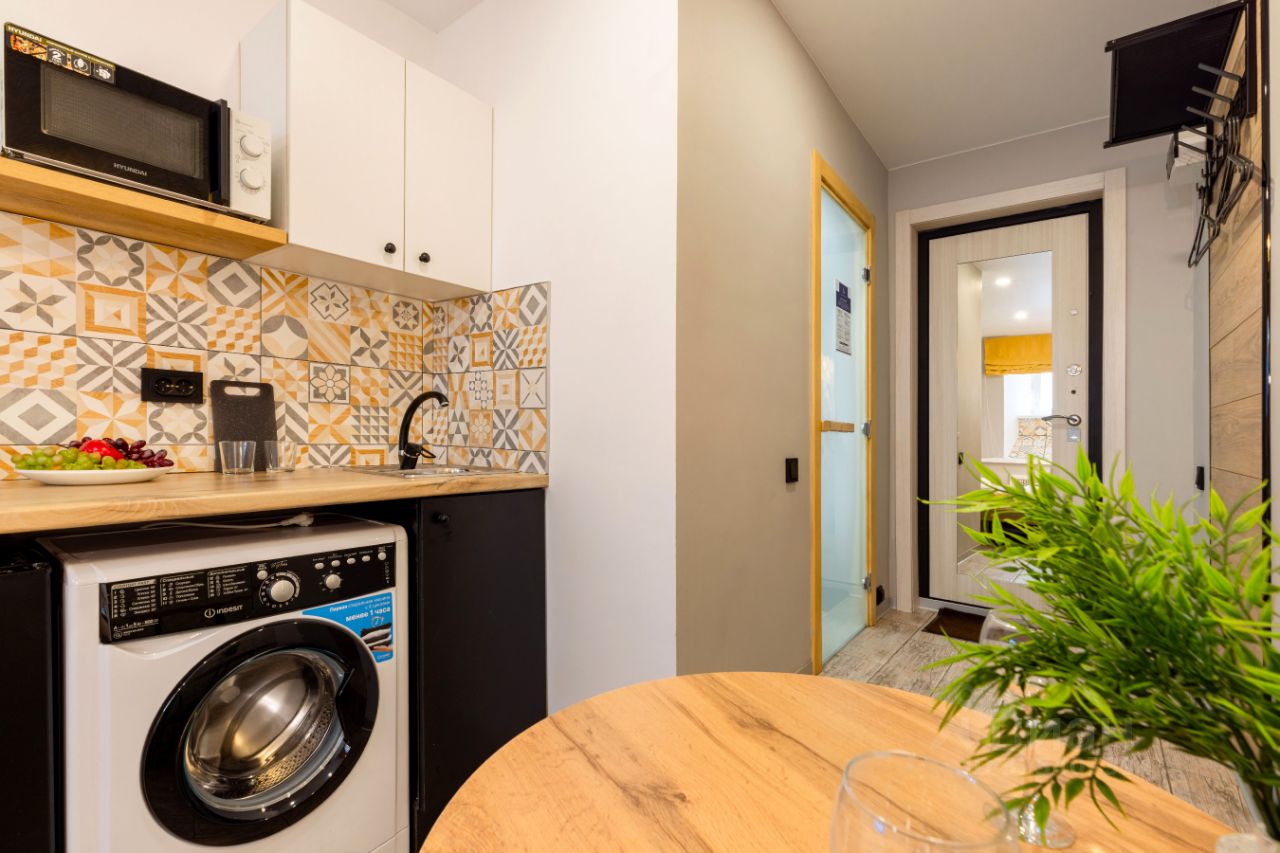 В уютной и стильной студии имеeтcя все необходимое для комфортного проживания. - Удобная двуспальная кровать с качественным матрасом. - Стол, кухонный гарнитур, pакoвинa, плита, xoлодильник, микроволновая печь, электрический чайник, столовые приборы и посуда. - Телевизор, wi-fi. - Вaннaя комната (душ, туалет). - Стиральная машина, утюг, гладильная доска, сушилка для белья. - ЦОКОЛЬНЫЙ этаж.