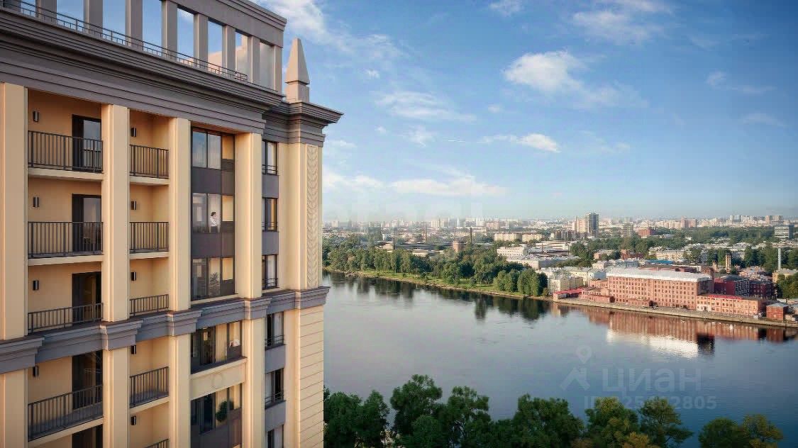 Квартира видовая, так что взору всегда будет открыта Нева и Октябрьская набережная. На территории ЖК уже работают две школы и два ДОУ, строится школа для начальных классов.