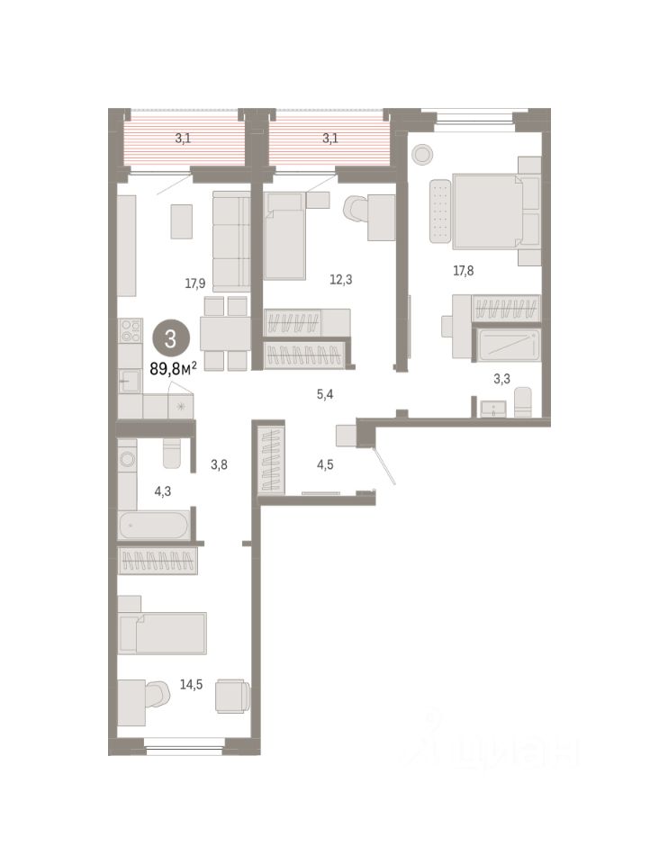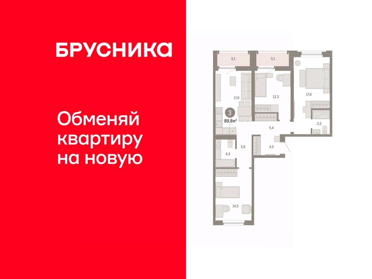 Продаётся с паркингом и кладовой. Квартира с кухней-гостиной и тремя спальнями в жилом районе ''Зарека''. Особенности планировки: предчистовая отделка, разнесённые спальни. квартиры в нашей базе: ЗРК05.2-Ж2.4.2.