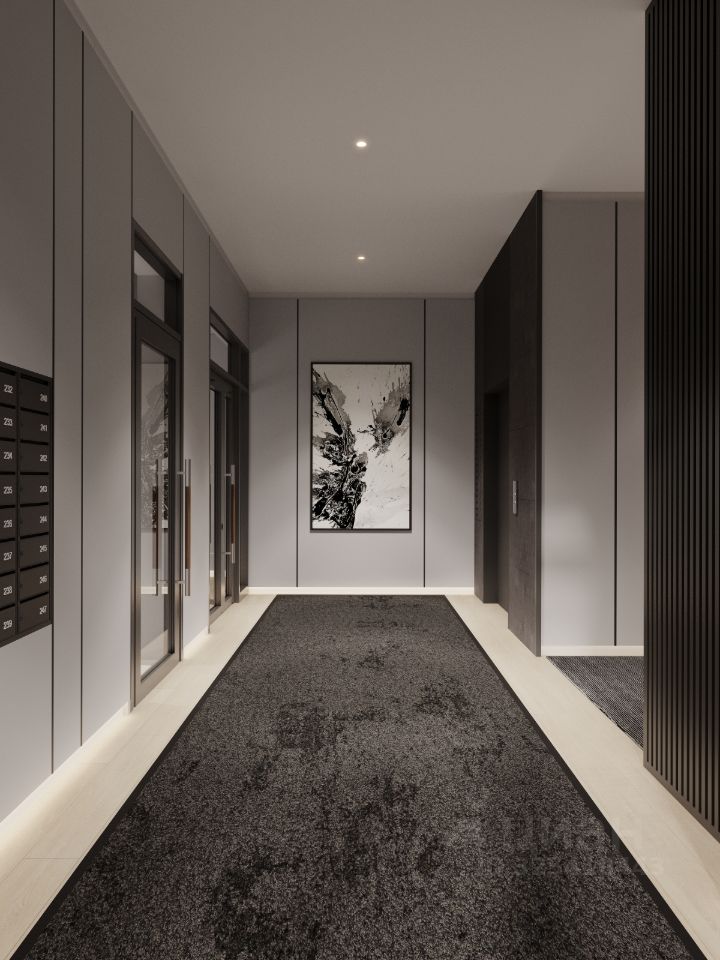 Смысловая ось квартала — широкая главная улица с высаженными вдоль неё высокими деревьями. Они создают тень и работают как шумо- и пылезащитные экраны. Это место сосредоточения основных пешеходных и транспортных потоков, на сторону которых мы ориентировали большинство коммерческих помещений. Отсюда жители могут свернуть на тихие соседские улицы и попасть на внутриквартальную площадь — ещё одну точку притяжения. #23FFsd