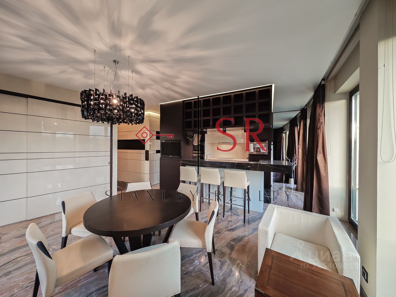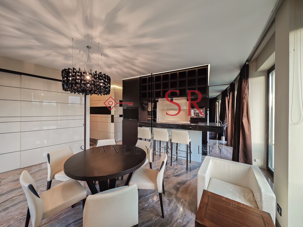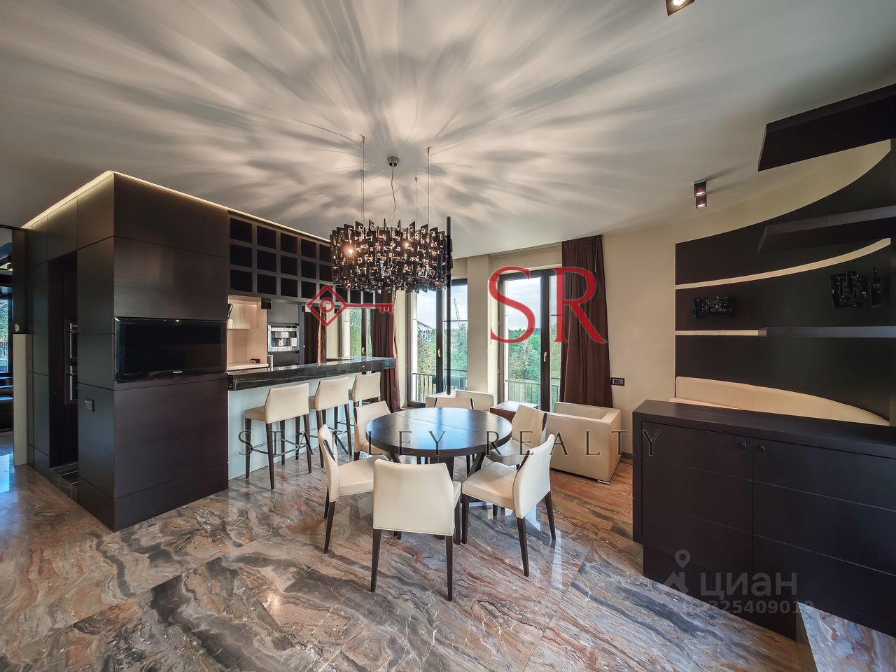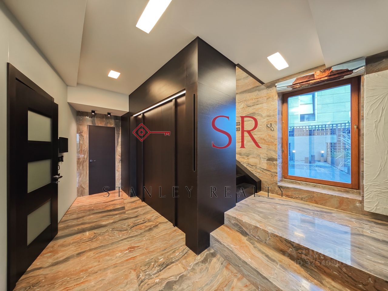 Особый акцент сделан на эстетике, продуманном комфорте и использовании премиальных строительных материалов. Полы выполнены из мрамора с системой подогрева. Гармоничное сочетание натурального дерева и кожи воссоздаёт атмосферу колониального стиля с его изысканной сдержанностью и классическими мотивами. Потолки высотой 3,3 метра и панорамное остекление придают интерьеру особую выразительность и большое количество естественного света. Отдельного внимания заслуживает профессионально спроектированная система освещения.