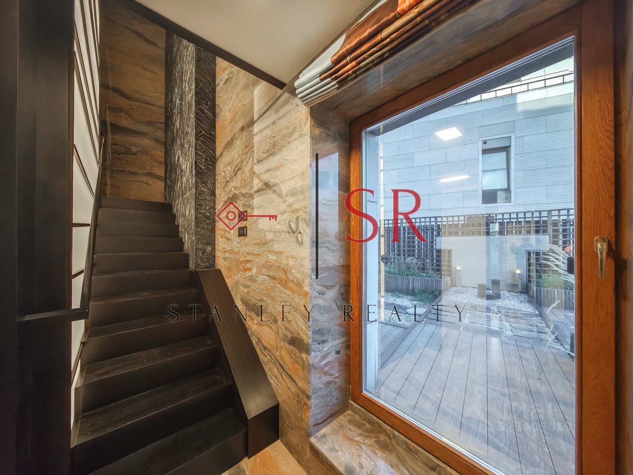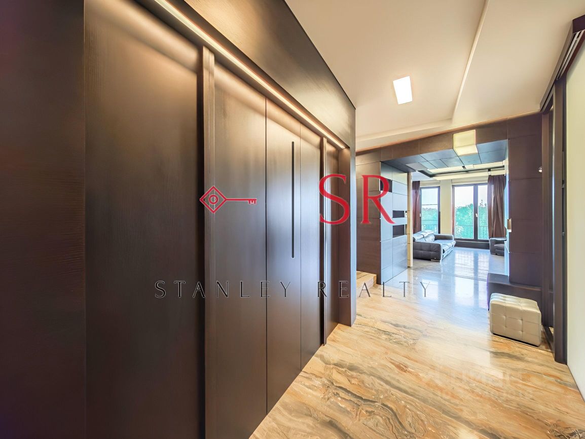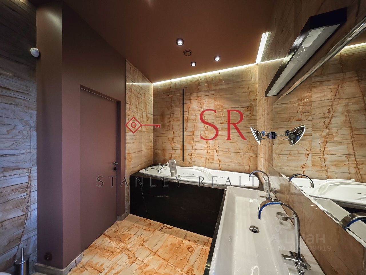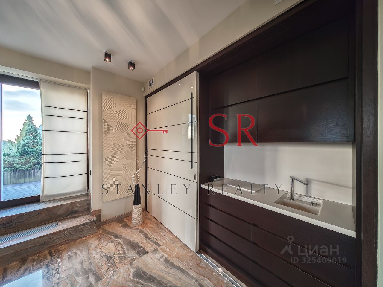 Особый акцент сделан на эстетике, продуманном комфорте и использовании премиальных строительных материалов. Полы выполнены из мрамора с системой подогрева. Гармоничное сочетание натурального дерева и кожи воссоздаёт атмосферу колониального стиля с его изысканной сдержанностью и классическими мотивами. Потолки высотой 3,3 метра и панорамное остекление придают интерьеру особую выразительность и большое количество естественного света. Отдельного внимания заслуживает профессионально спроектированная система освещения.