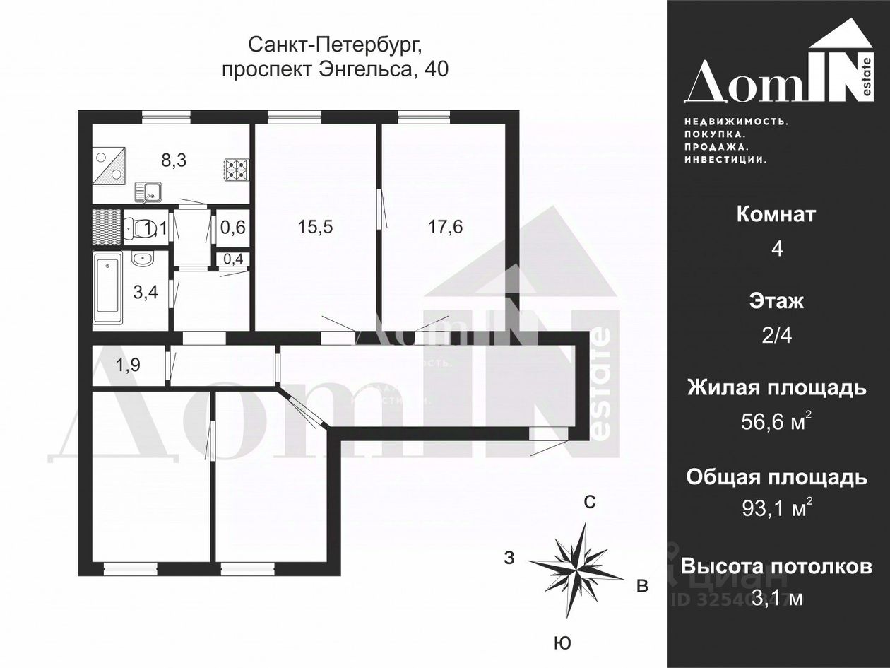 продам 3-к, Энгельса проспект, 4017 400 000 ₽