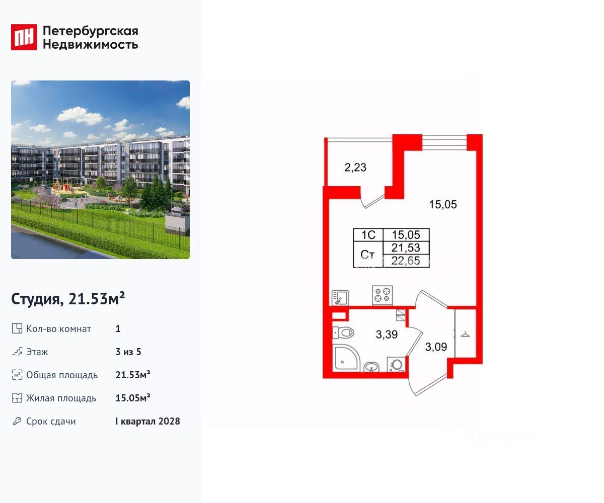 Удобная, классическая, функциональная европланировка, вместительная прихожая 3.09 м². Общая площадь студии - 21.53 м², жилая 15.05 м², высота потолка 2.77 м.