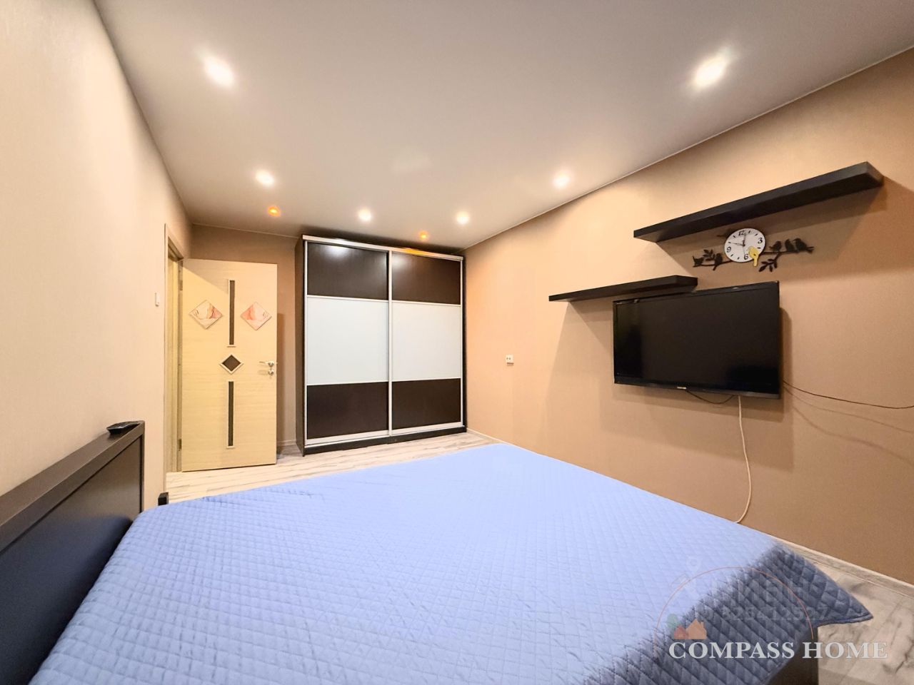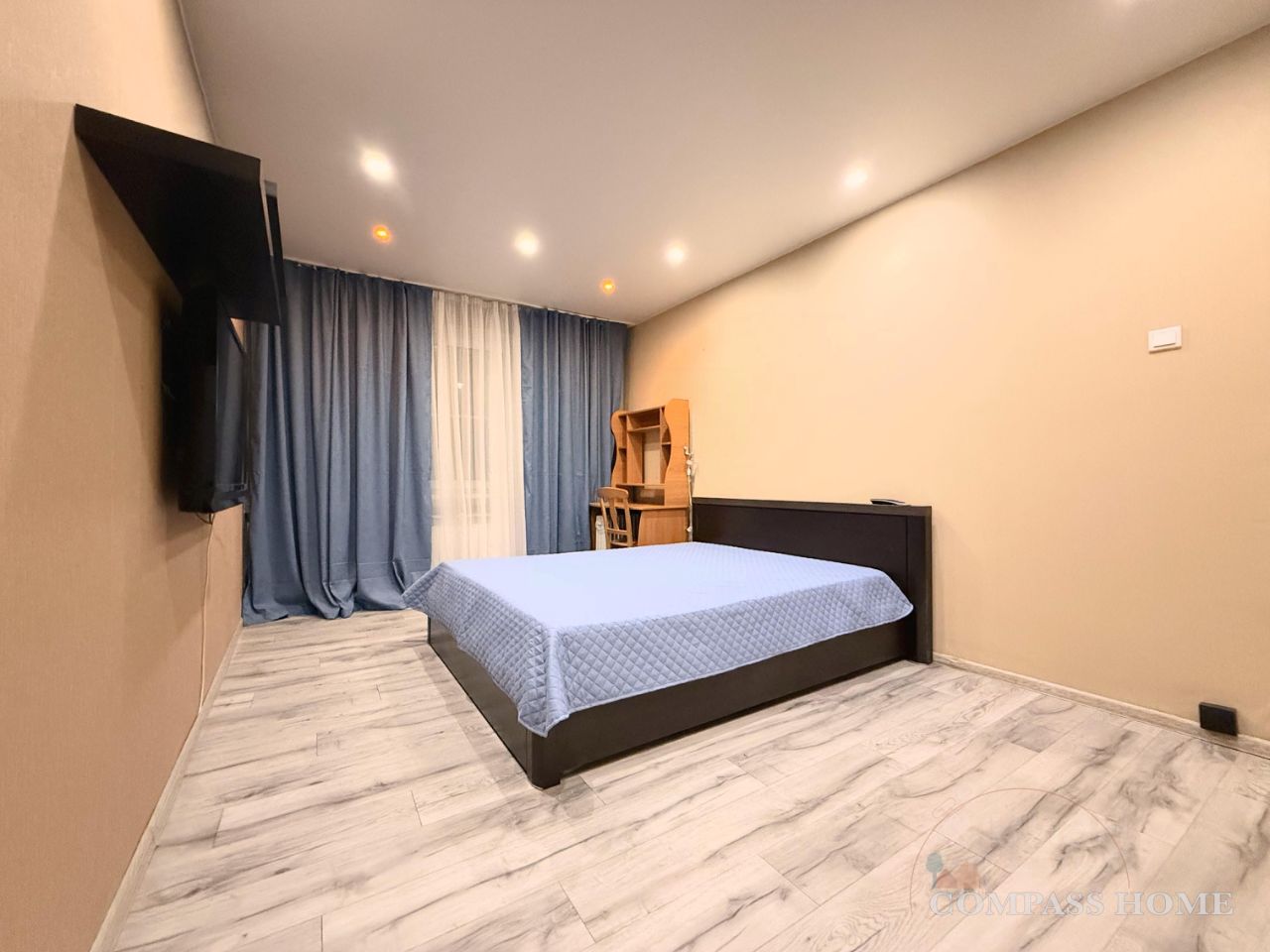 Общая площадь составляет 34,7 кв.м. Квартира с современным ремонтом, полностью меблирована и оборудована всей необходимой бытовой техникой: холодильник, стиральная машина, плита, микроволновая печь, телевизоры, теплые полы в комнате и коридоре.
