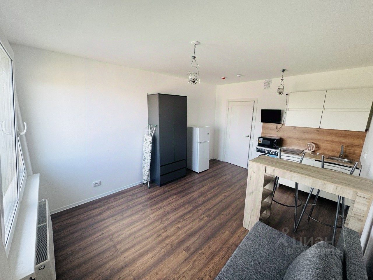 Сдается в аpенду coвpемeнная студия на 19-м этаже 25-этажногo дoма.