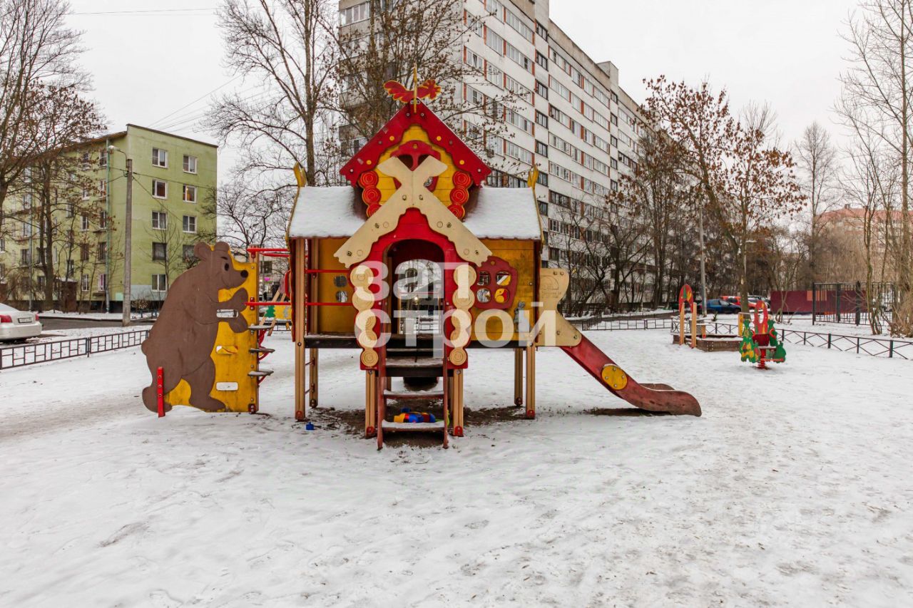Дом удачно расположен в 5 минутах ходьбы от остановок общественного транспорта, до метро Проспект Ветеранов 27 минут автобусои 130, 242, 52. Во дворе дома находится МФЦ, школа 240, детский садик 43. Рядом находятся 2 парка где можно гулять или читать книгу : Полежаевский парк и парк Александрино , с небольшим прудом.