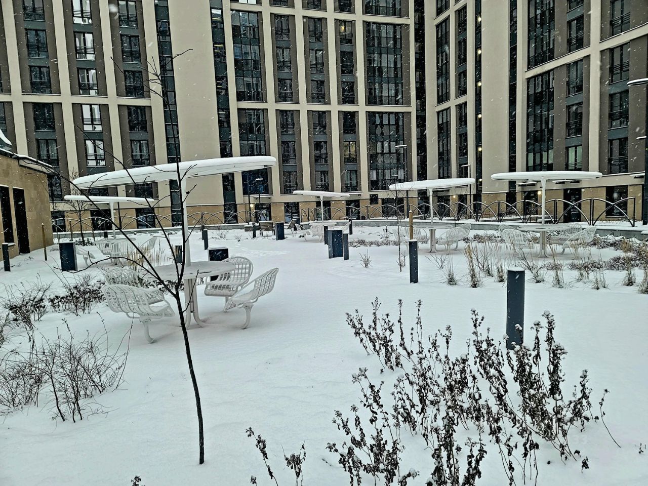 ЖК имеет охрану, закрытый благоустроенный двор с зонами отдыха, спортивной и детской площадкой, бесплатный теннисный корт.