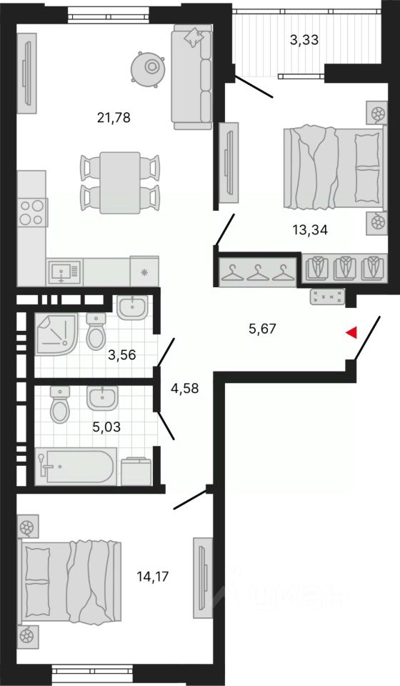 Квартира находится в корпусе 2.4. Дом монолитный, одноподъездный, высотой 13 этажей. На этаже 4 квартиры. В подъезде 1 пассажирский и 1 грузовой лифт. Окончание строительства - 4 квартал 2028 года. Оформление сделки по договору долевого участия.
