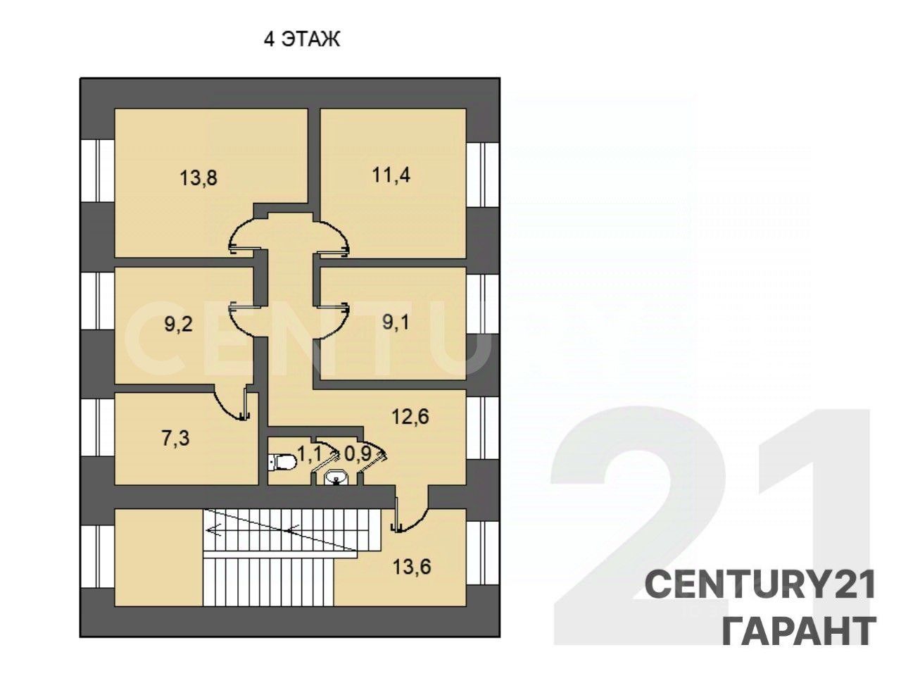 Общая площадь: - 350 м². Этажность: 4 этажа. Фундамент: Бутовый ленточный, сборные железобетонные блоки. Стены: Красный кирпич по периметру - 60 см., нет внутренних несущих конструкций. Межэтажные перекрытия: сборные железобетонные Крыша: Из оцинкованного железа по деревянной обрешетке.