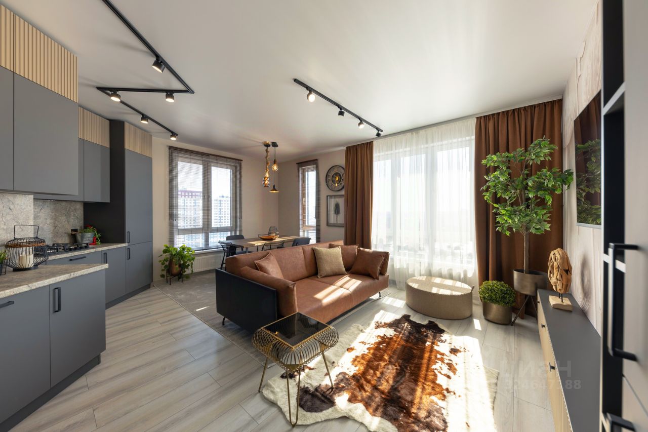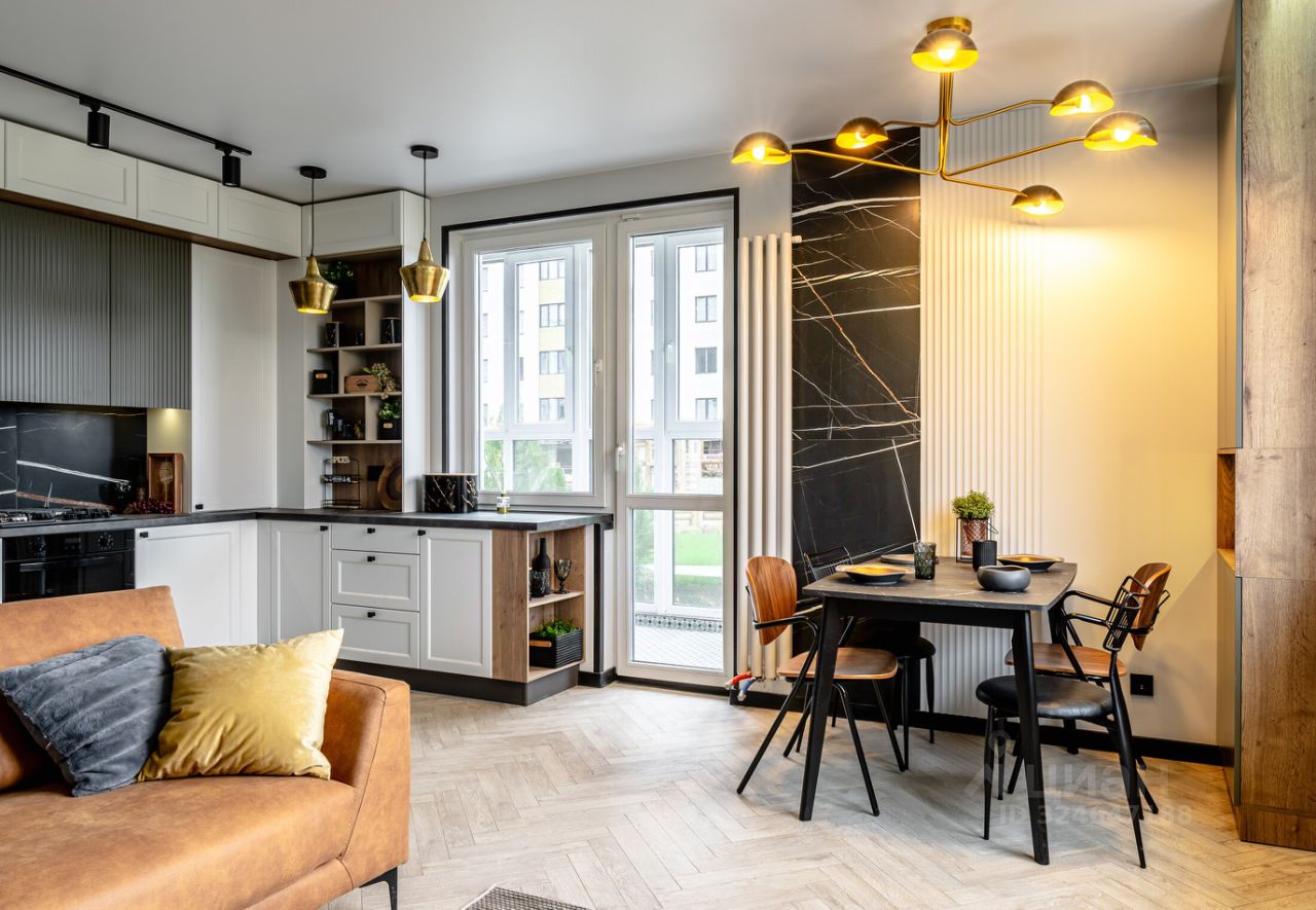 Квартира на ''Бульваре оптимистов'' — с видом на зелень и хорошее настроение Планировка СМАРТ 2.0 — просторная кухня-гостиная, спальня, гардероб. Потолки выше, чем обычно, окна почти в пол — в квартире светло, свободно и дышится легко.