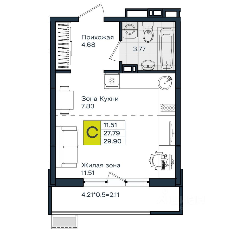 продам 1-к, Имени Профессора Малигонова, 14 395 300 ₽