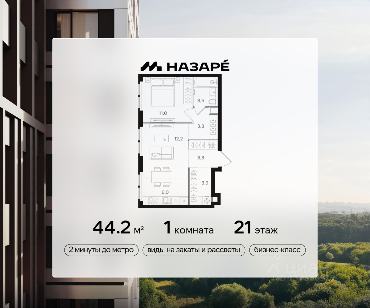 Продается 1-комнатная квартира в ЖК ''НАЗАРЕ''' Общая площадь - 44.20 Тип дома - монолитный Этаж - 21 Год сдачи - 2028 Предлагается квартира площадью 44.20 кв. м в новом современном квартале на востоке Москвы, прямо у станций метро и МЦК ''Бульвар Рокоссовского''. Квартира располагается в корпусе 3 на 21 этаже комплекса бизнес-класса ''НАЗАРЕ'''.